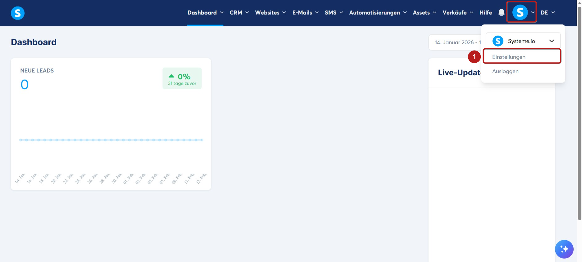 Klicken Sie auf Ihr Profilbild und wählen Sie Einstellungen (1) aus.