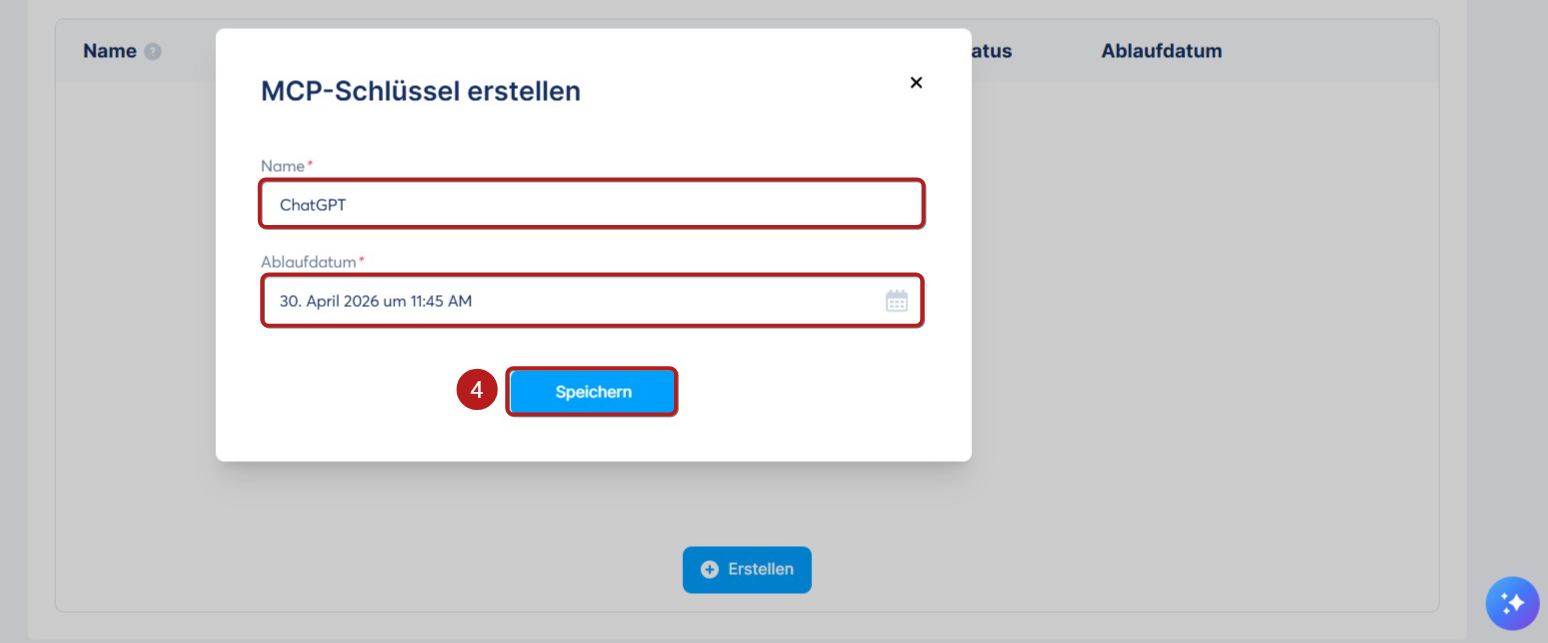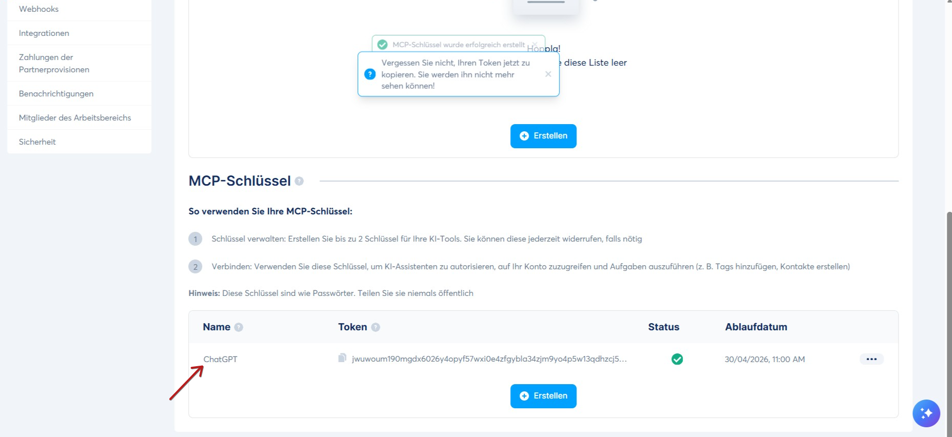 So integrieren Sie Ihr Konto mit ChatGPT mithilfe von MCP-Keys