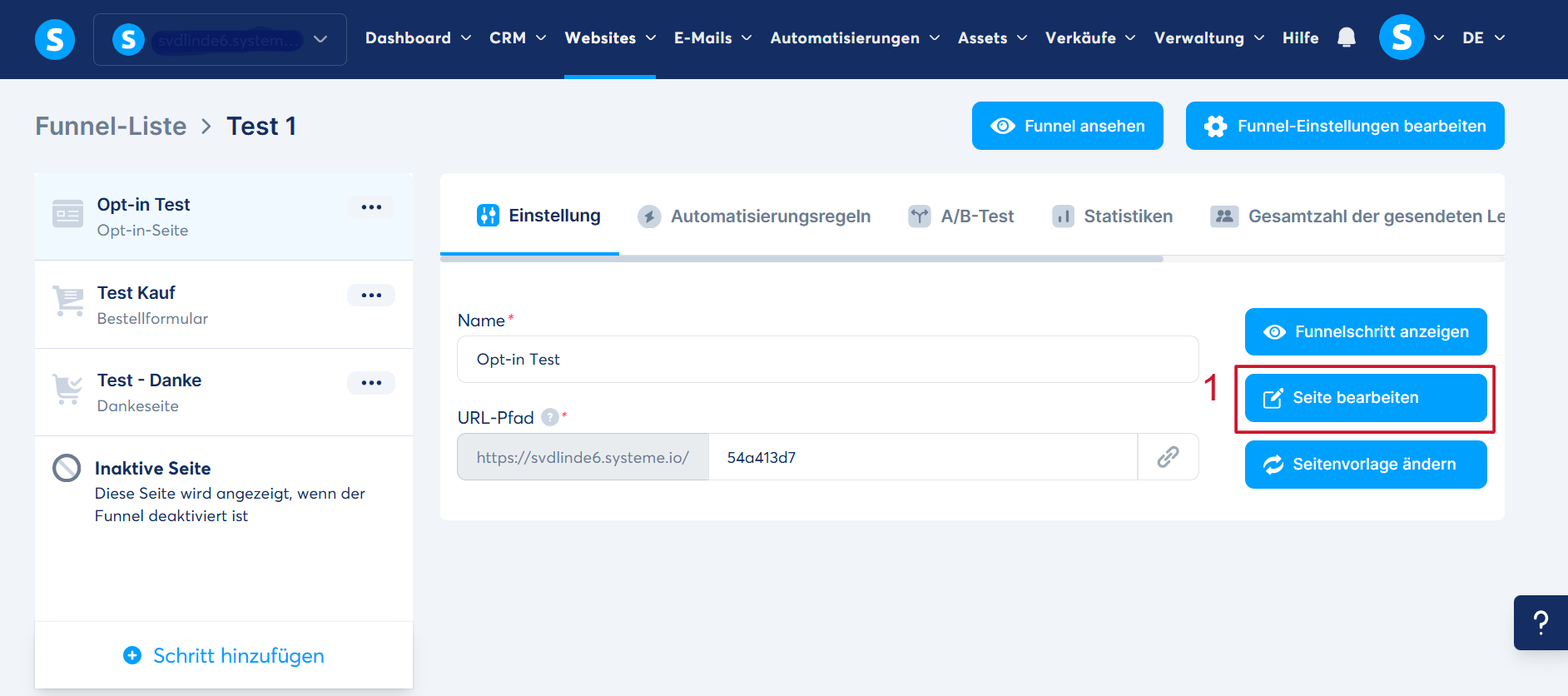 Schauen wir uns an, wie Sie Videos in Ihr Konto hochladen. Das folgende Beispiel verwendet eine Funnel-Seite, der Vorgang ist jedoch für jeden Seitentyp in Ihrem systeme.io-Konto identisch.