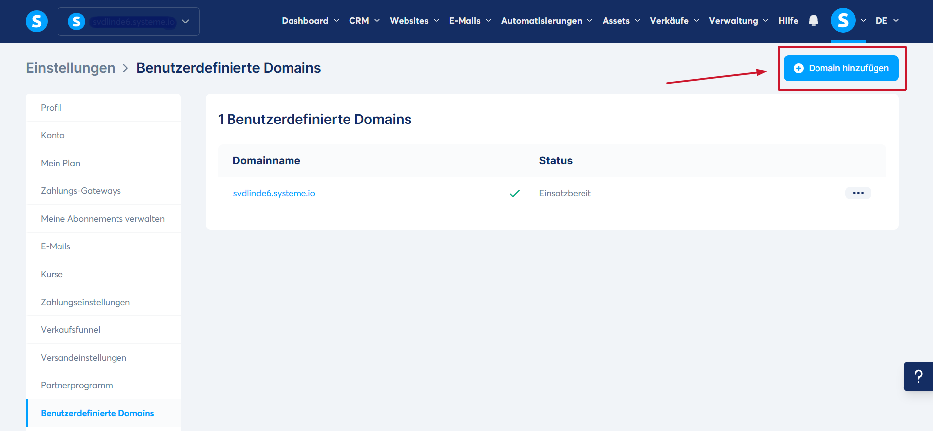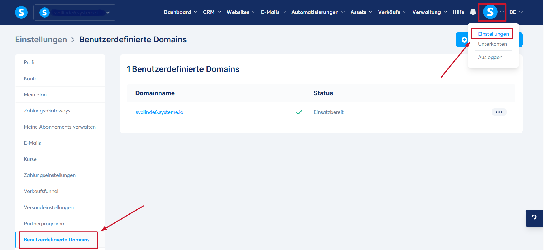 In diesem Artikel erfahren Sie, wie Sie Ihre Subdomain in systeme.io integrieren.
