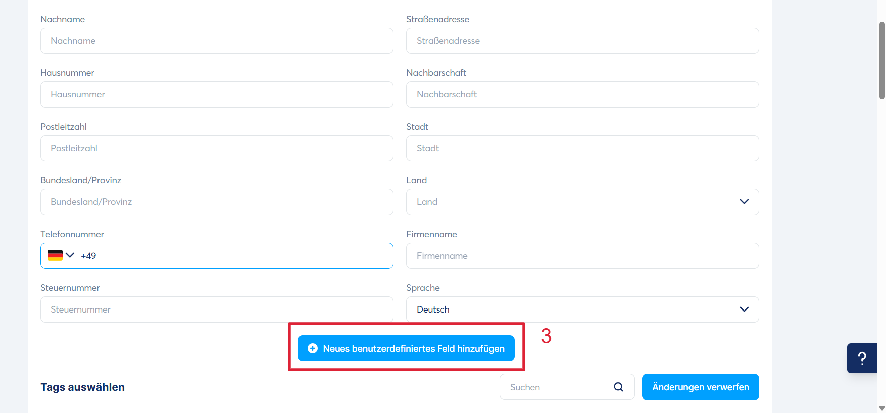 Klicken Sie anschließend auf "Neues benutzerdefiniertes Feld hinzufügen" (3).