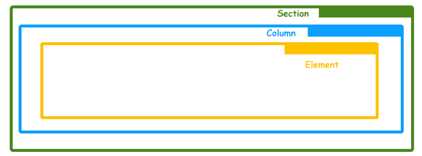 1. Abschnitte (Section): Dies sind die Hauptbausteine Ihrer Seite. Sie beginnen damit, Abschnitte hinzuzufügen, und platzieren dann Zeilen (Spalten) und Elemente darin.