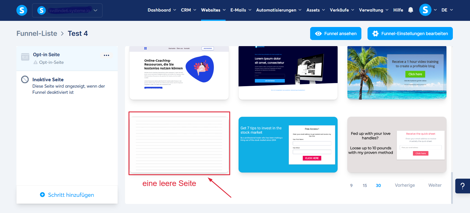 So erstellen Sie eine benutzerdefinierte Seite mit systeme.io