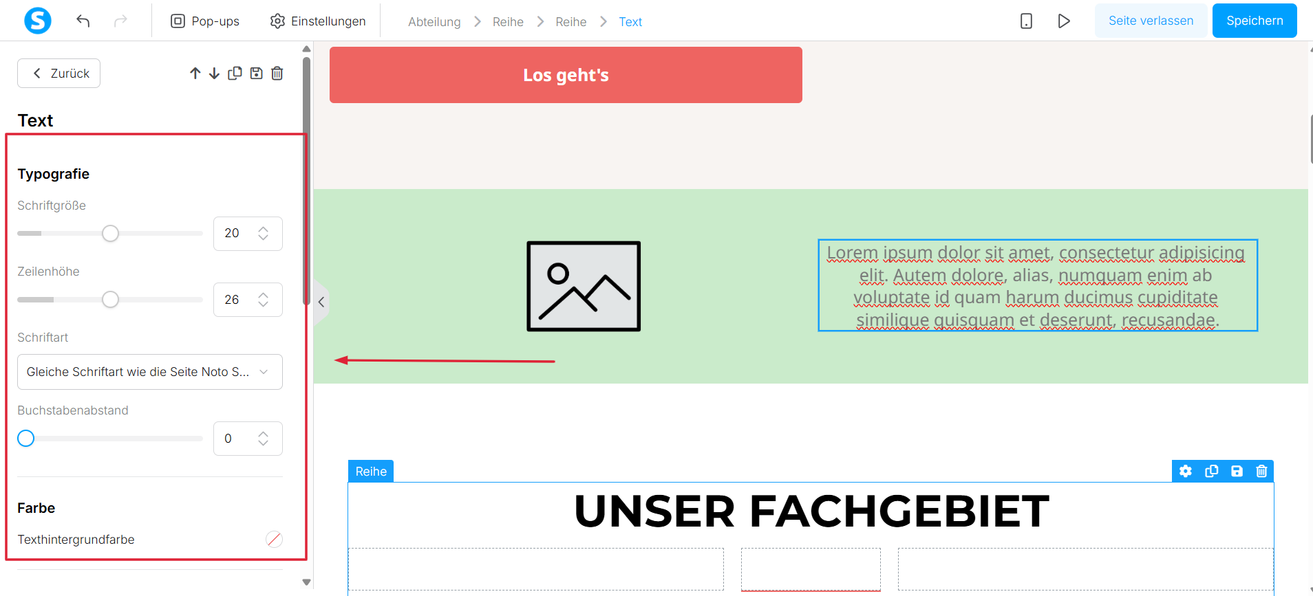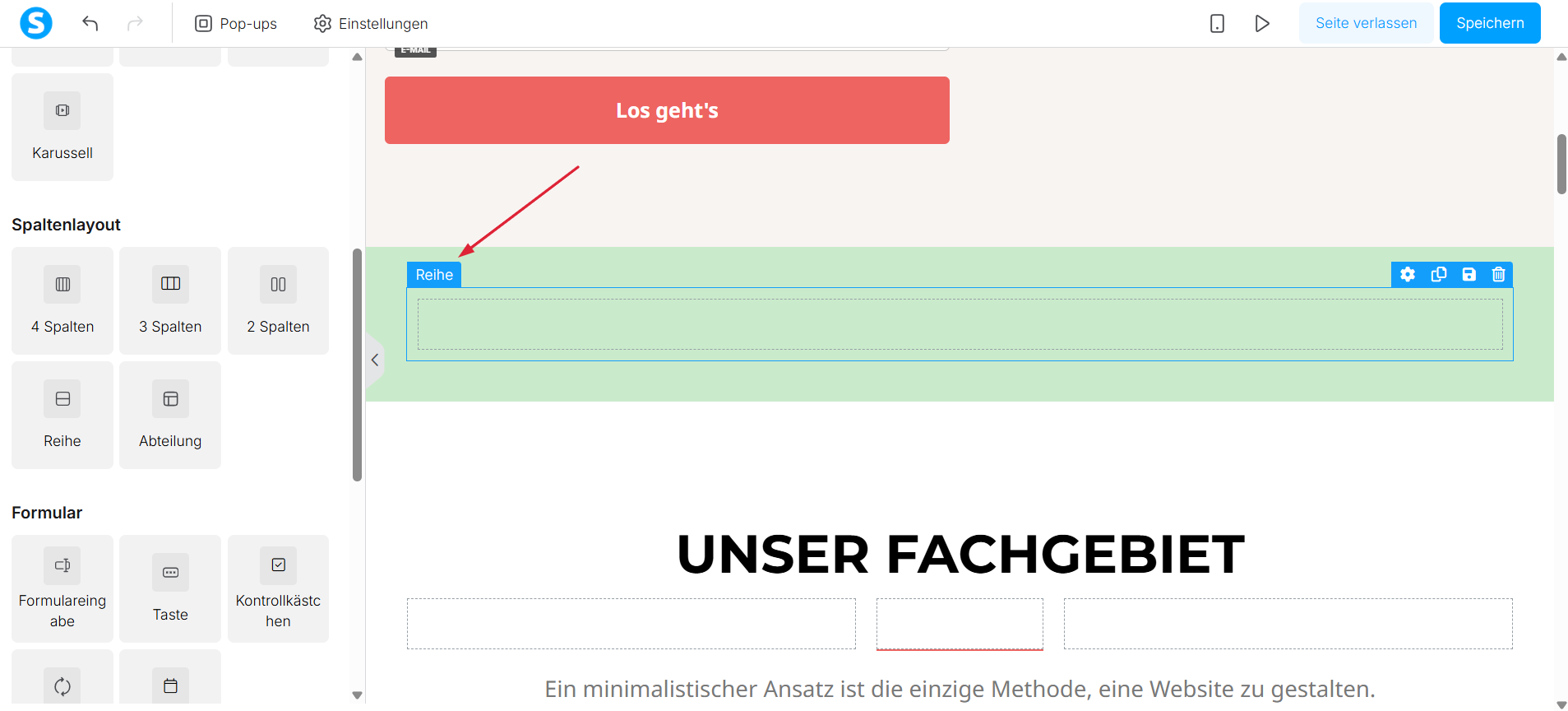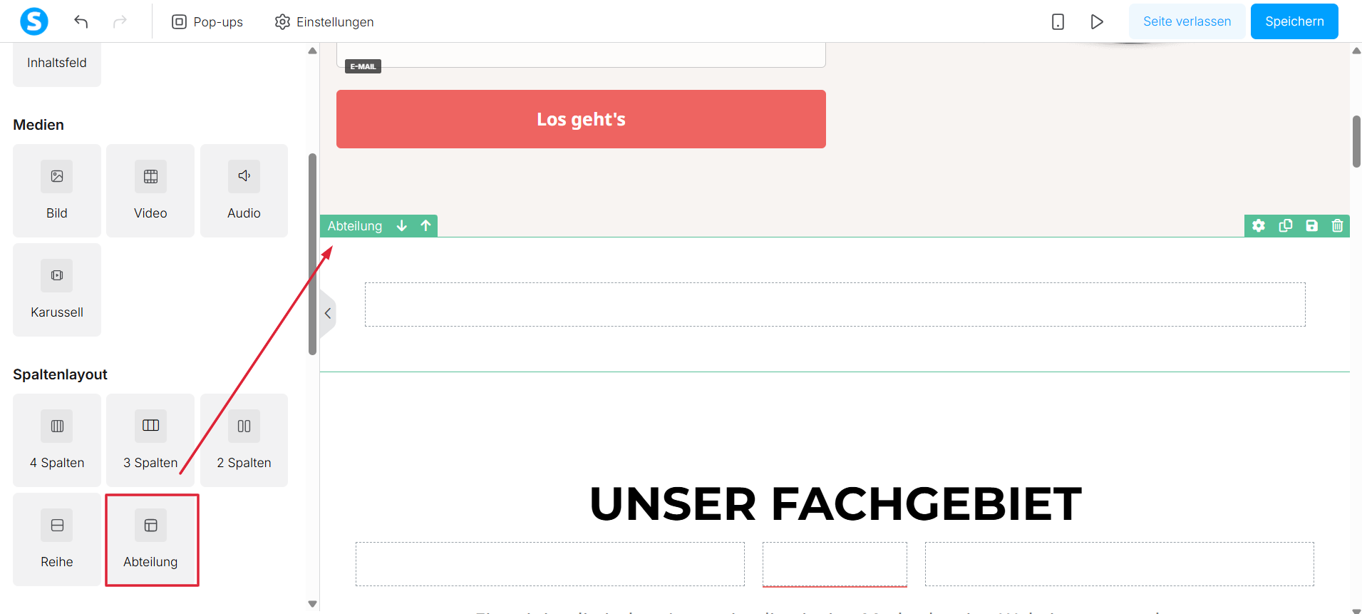 So fügen Sie Abschnitte und Spalten hinzu:
