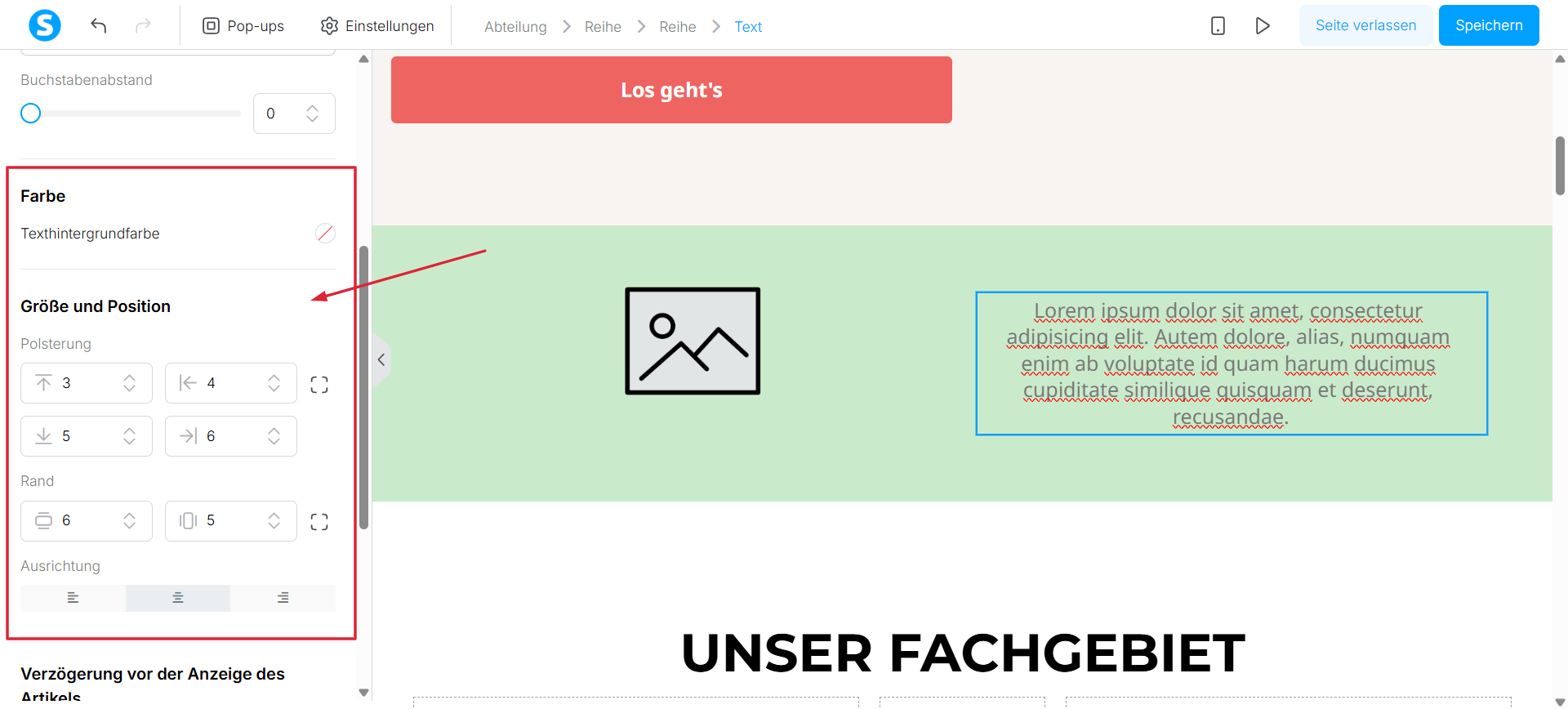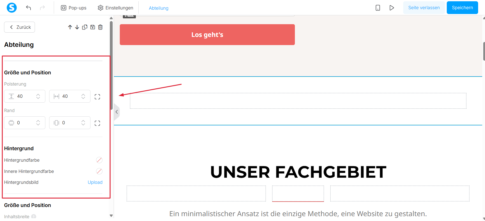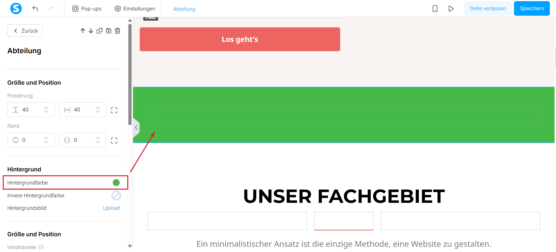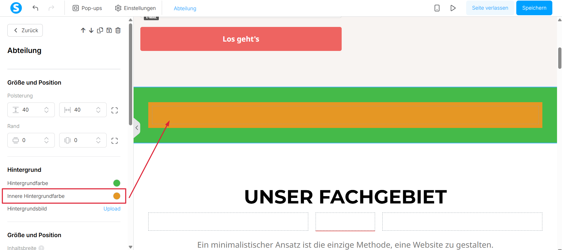 - die innere Hintergrundfarbe des Abschnitts ändern.