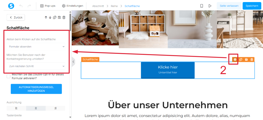 Klicken Sie auf das „Einstellungen“-Symbol, um die Schaltflächen-Einstellungen im Panel auf der linken Seite anzuzeigen (2).
