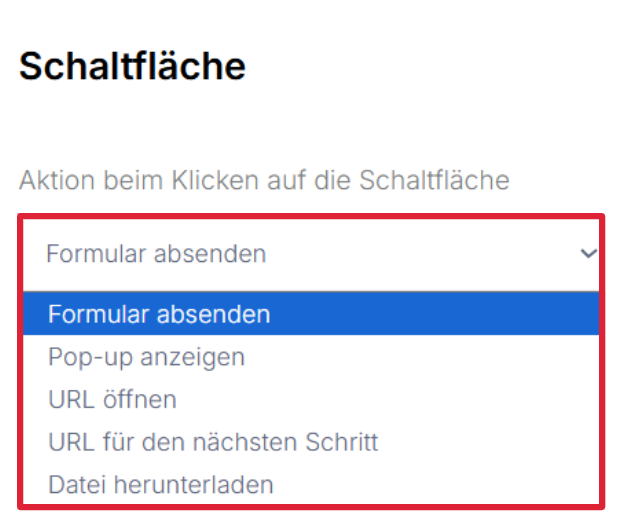 Beim Konfigurieren einer Schaltfläche müssen Sie auswählen, welche Aktion ausgeführt werden soll, wenn die Schaltfläche angeklickt wird (3).