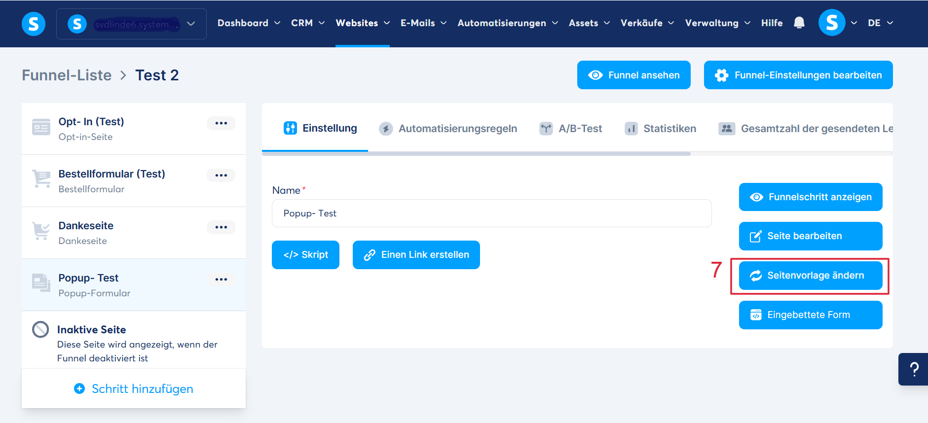 Sie können Ihre Pop-Up-Seite bearbeiten, indem Sie im Seiteneditor auf die „Seite bearbeiten“-Schaltfläche klicken (7).