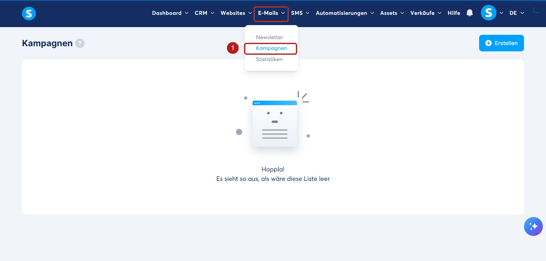Klicken Sie im Menü auf E-Mails und wählen Sie Kampagnen (1).