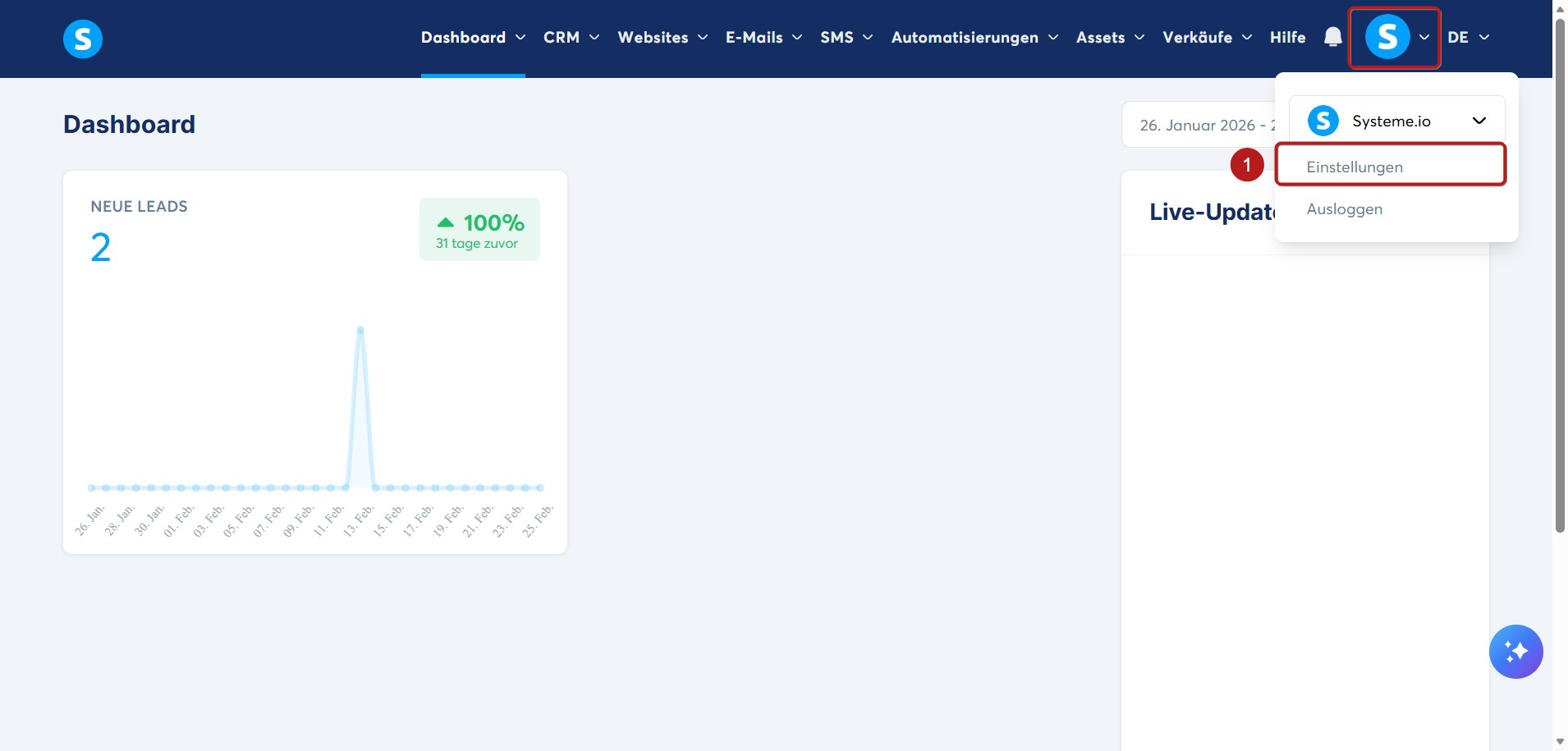 Klicken Sie auf Ihr Profilbild und wählen Sie dann Einstellungen (1).