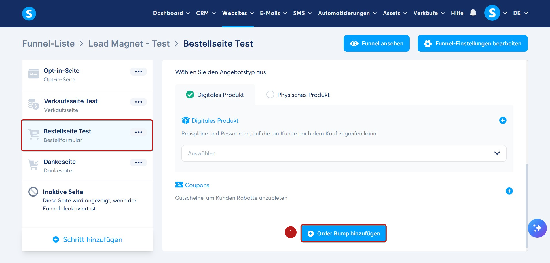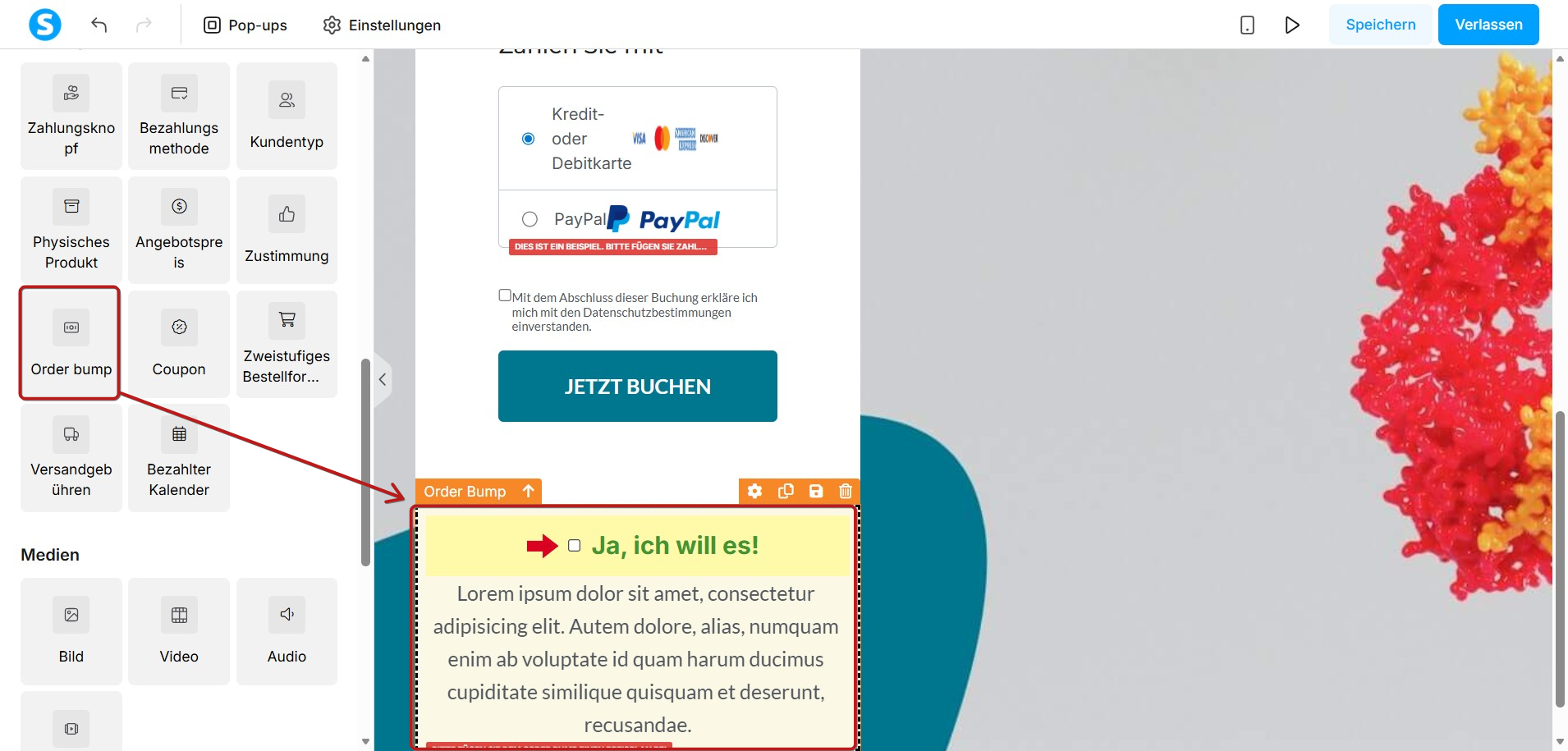 So fügen Sie einem Bestellformular/einer Zahlungsseite ein Zusatzprodukt (Order Bump) hinzu