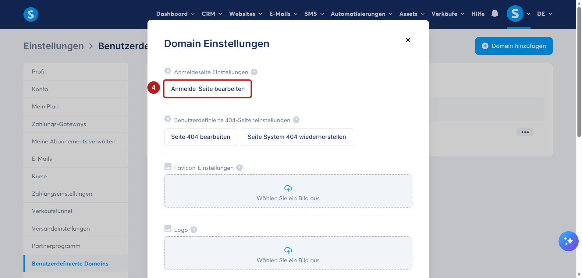 Klicken Sie im Popup auf Anmelde-Seite bearbeiten (4), um den Editor zu öffnen.