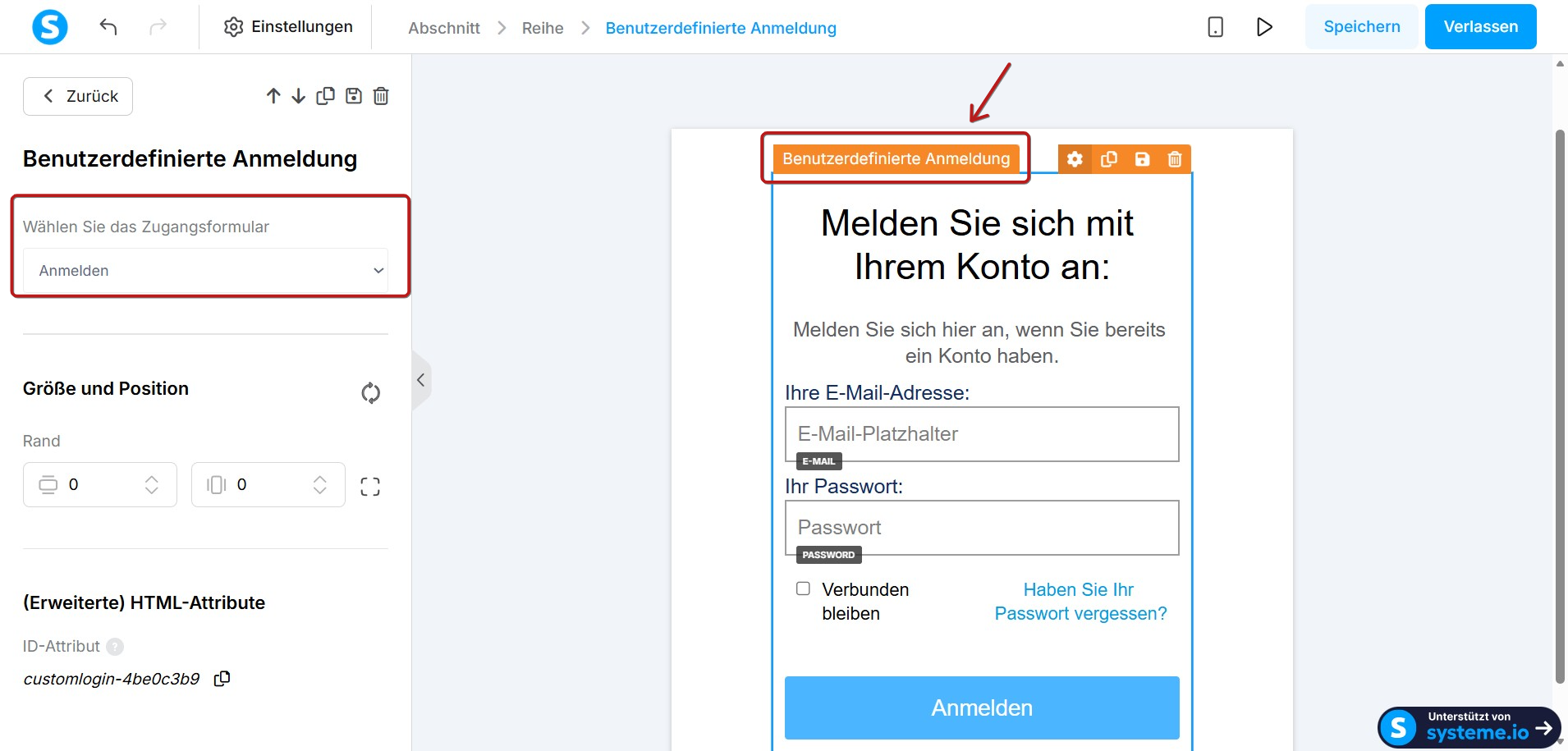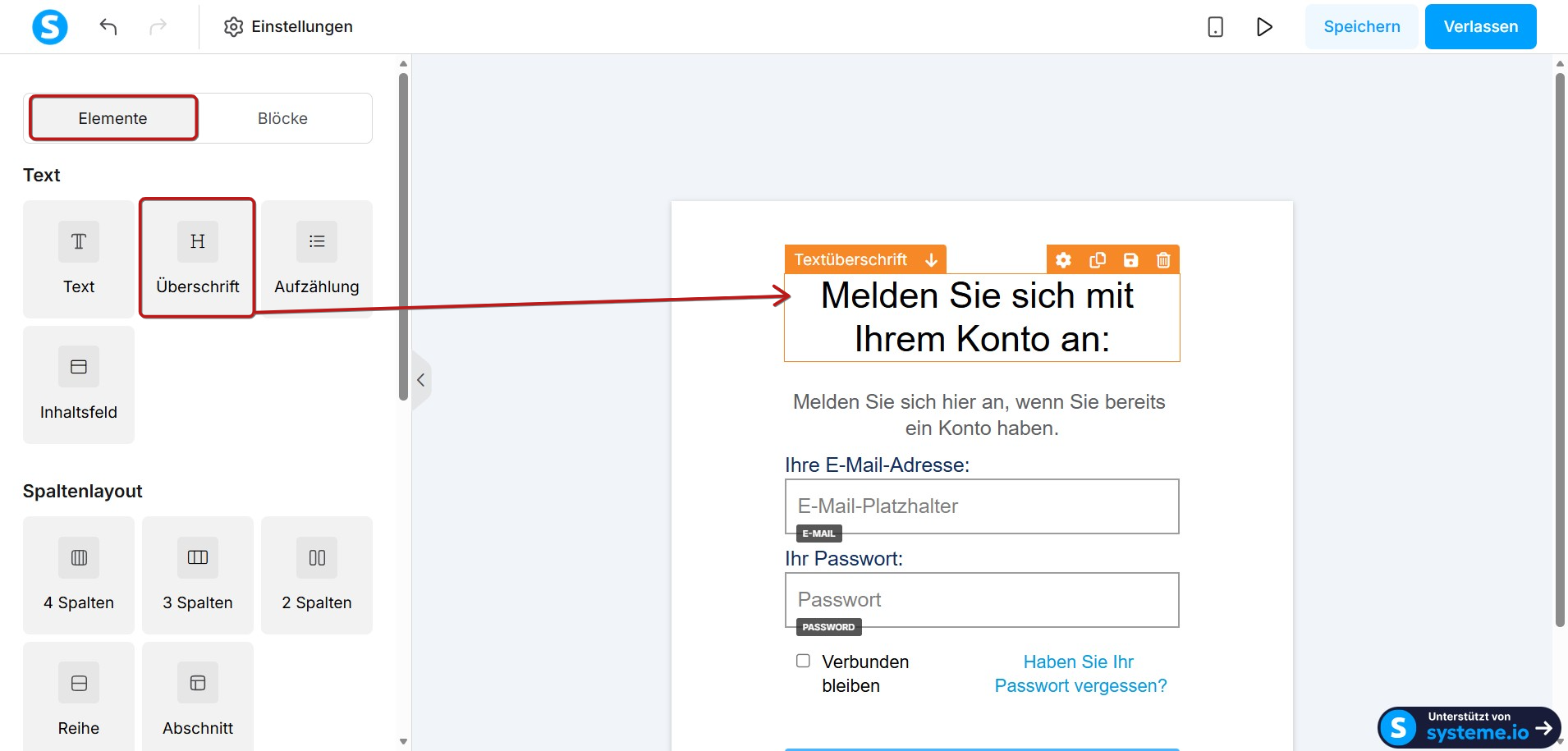 Sobald Sie sich im Seiteneditor befinden, passen Sie Ihre Login-Seite nach Bedarf an.