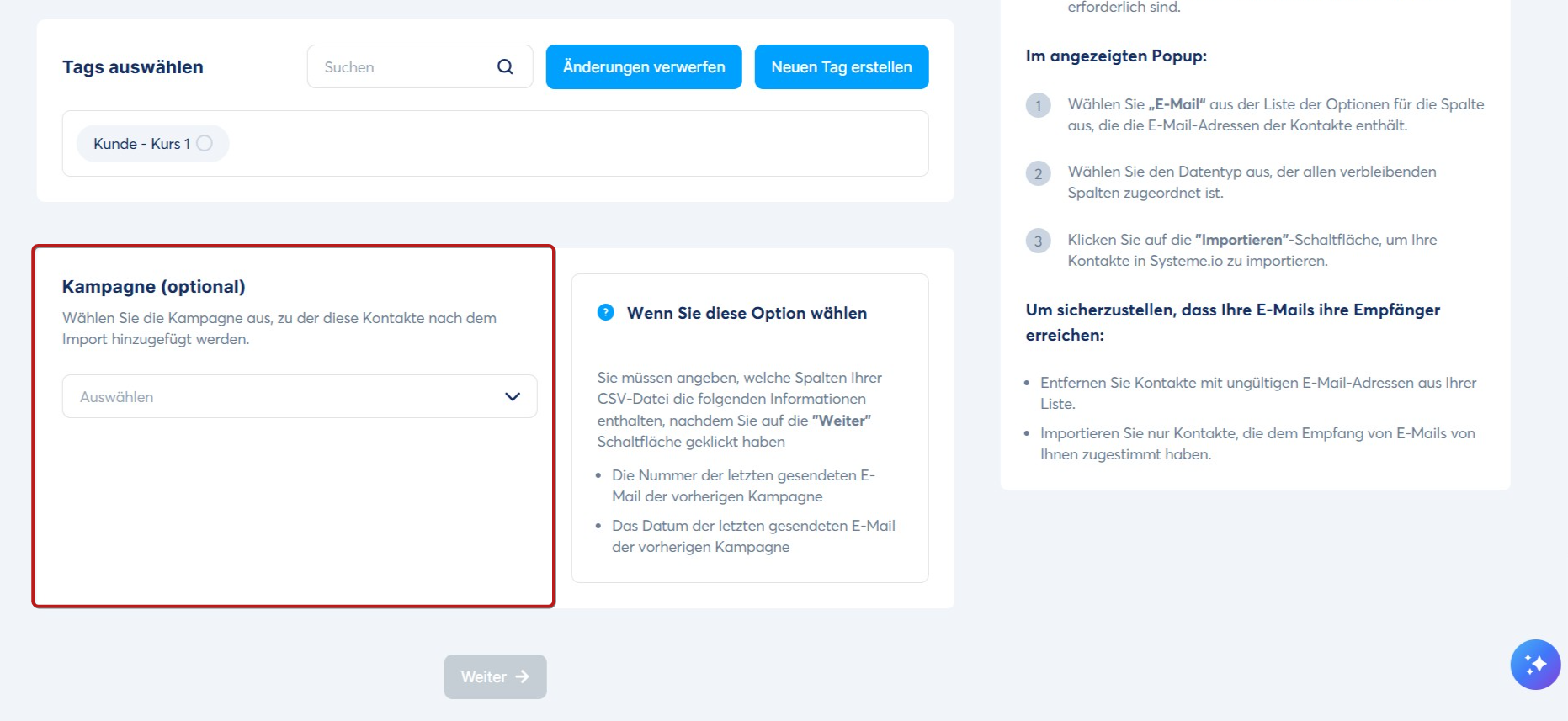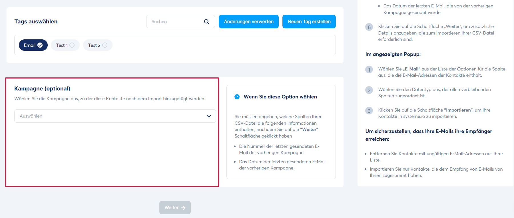 Für weitere Informationen zu diesem Thema lesen Sie bitte den folgenden Artikel: So importieren Sie Kontakte und fügen Sie einer Kampagne hinzu
