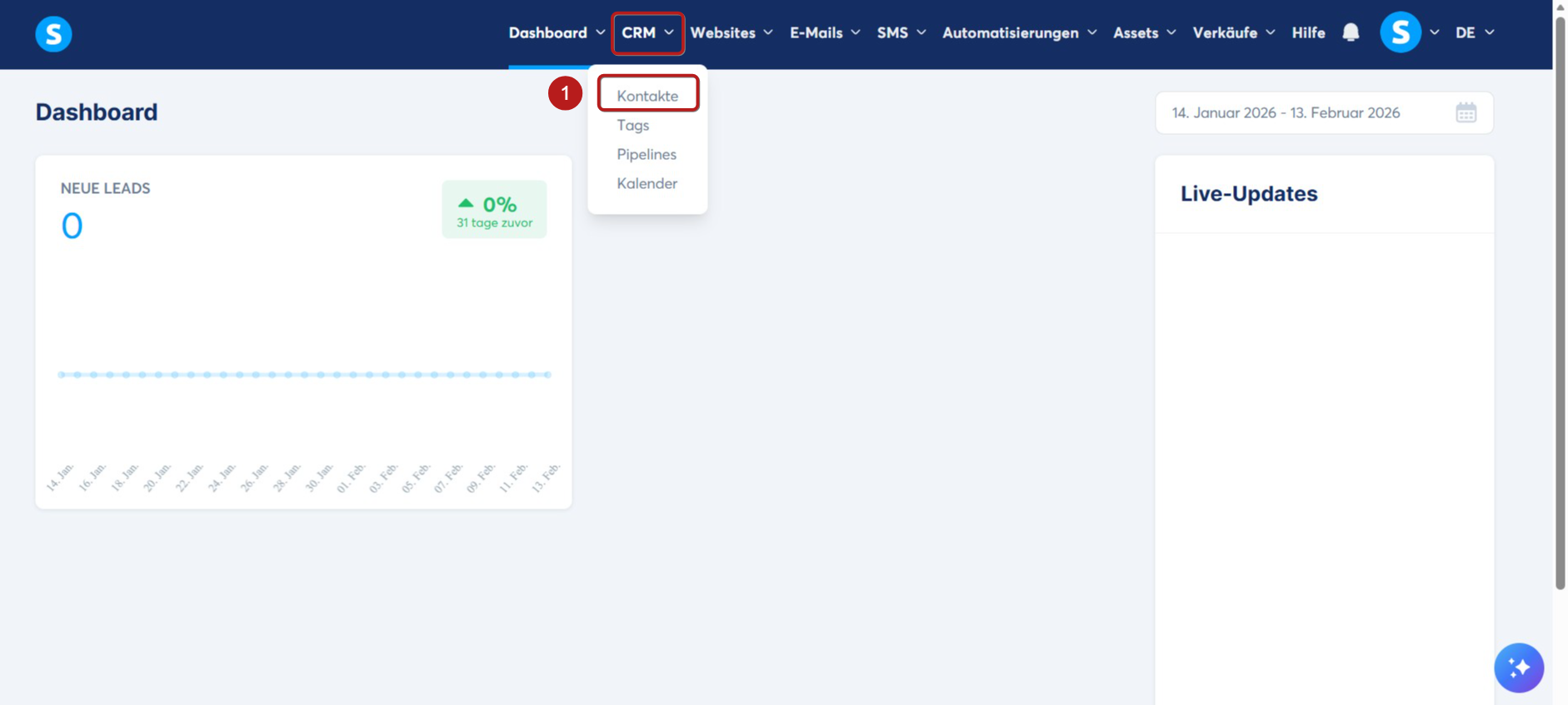 Klicken Sie im CRM-Menü auf Kontakte (1).