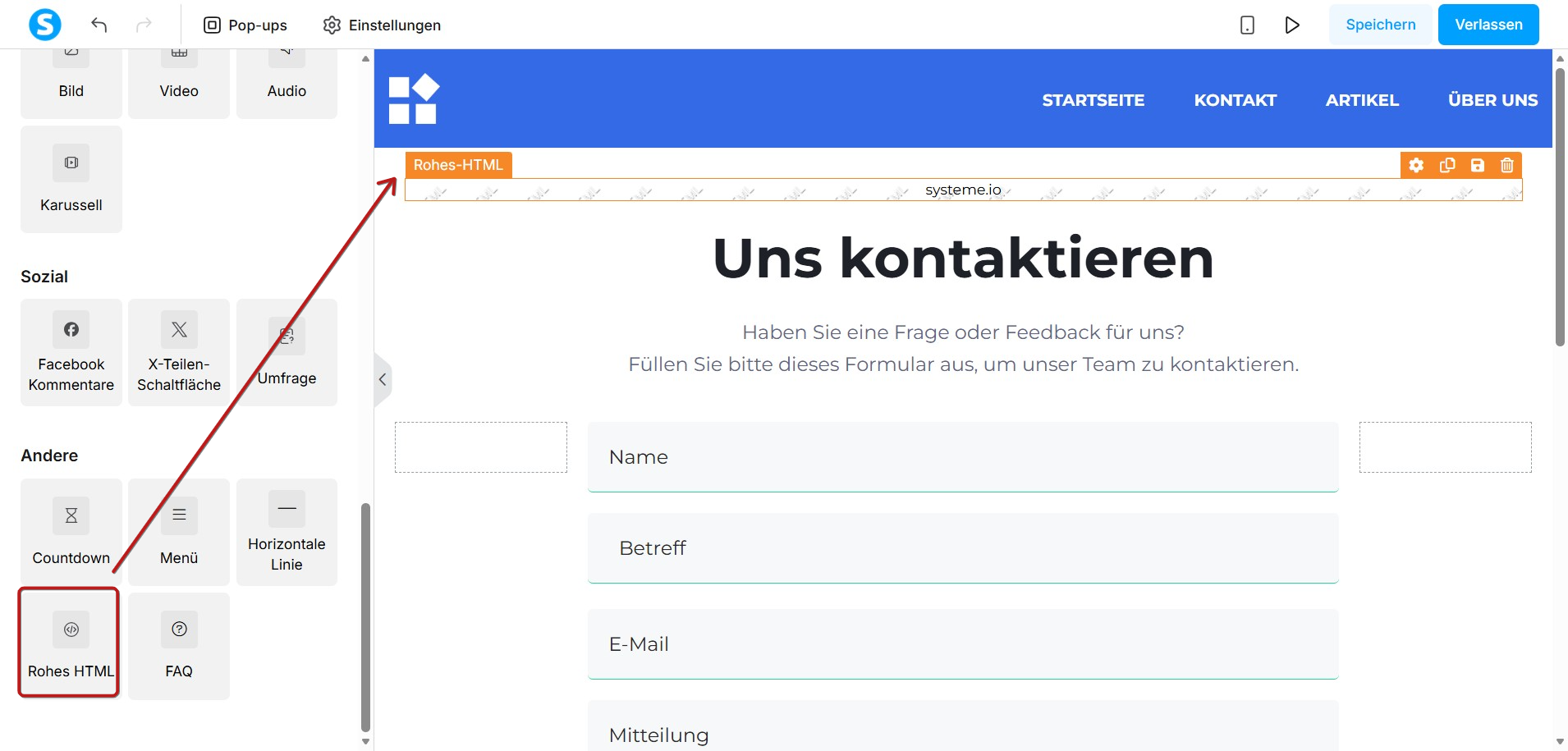 Ziehen Sie anschließend ein Raw-HTML-Element auf Ihre Blog-Seite und platzieren Sie es dort.