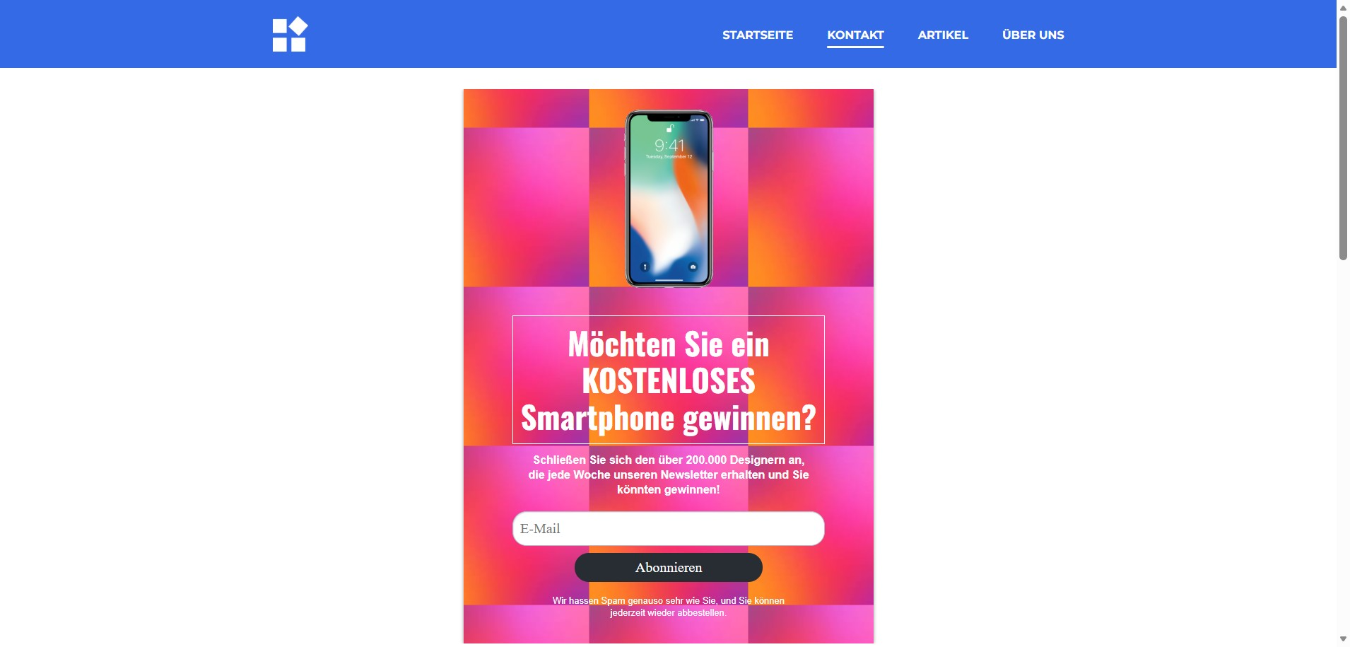 Wenn wir die Blog-Seite danach in der Vorschau anzeigen, wird das Formular wie unten dargestellt angezeigt: