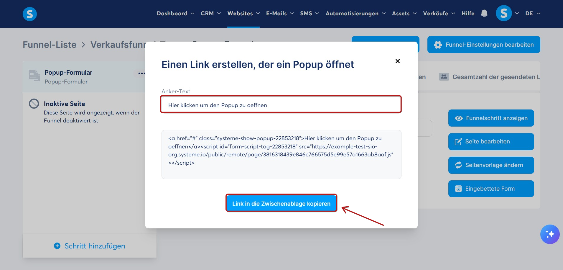 So fügen Sie Ihrem systeme.io-Blog ein Formular oder ein Pop-Up hinzu