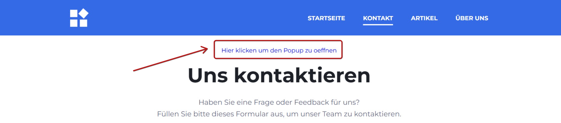 Es wird ein Popup-Fenster angezeigt, in dem Sie auf einen Link klicken können, der das Popup über einen Text öffnet: