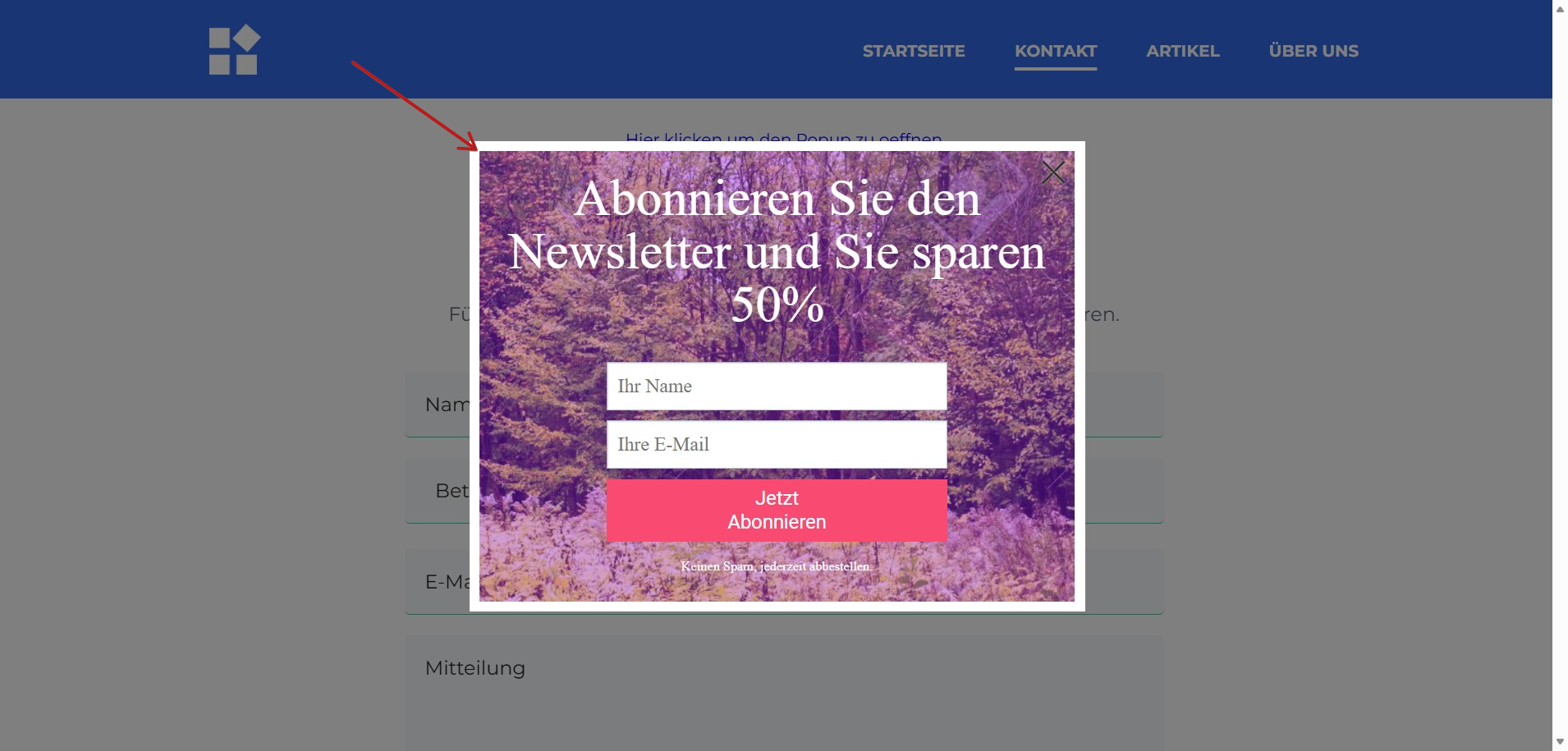 Schritt 4: Das Popup-Formular in Ihrem Blog einrichten