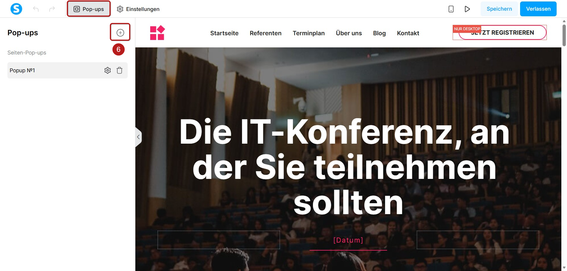 Klicken Sie auf Popups und anschließend auf das +-Symbol (6), um ein neues hinzuzufügen.