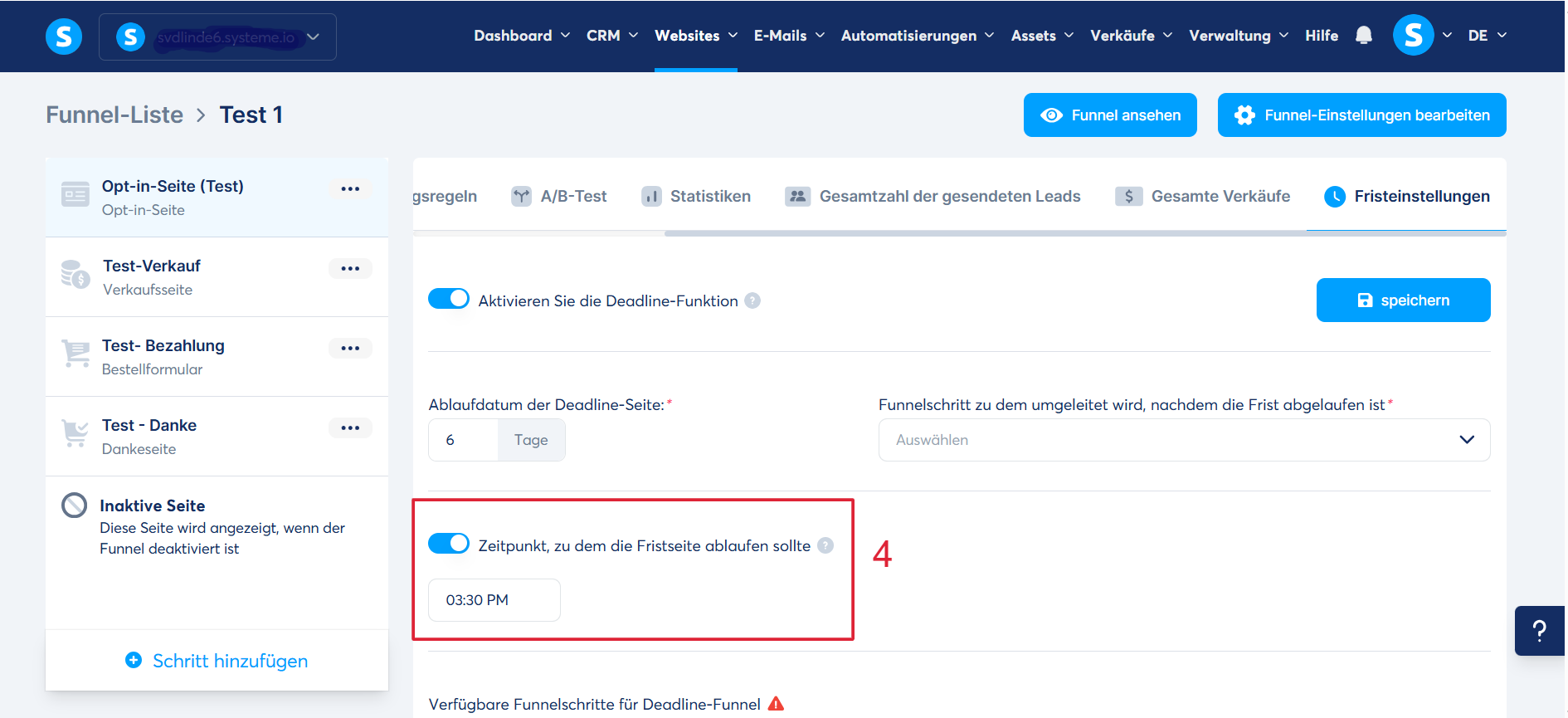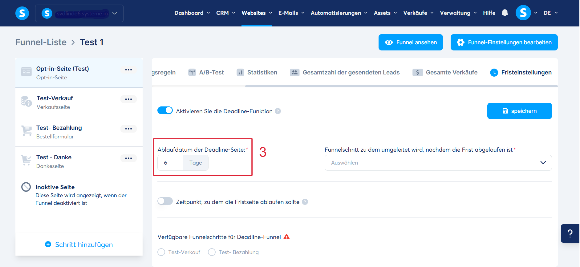 Diese Anleitung führt Sie Schritt für Schritt durch den Prozess, eine Deadline (Frist) für einen Verkaufsfunnel festzulegen.