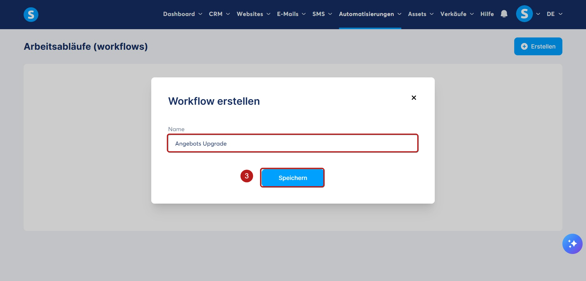 Wählen Sie einen Namen für Ihren Workflow und klicken Sie auf Speichern (3).