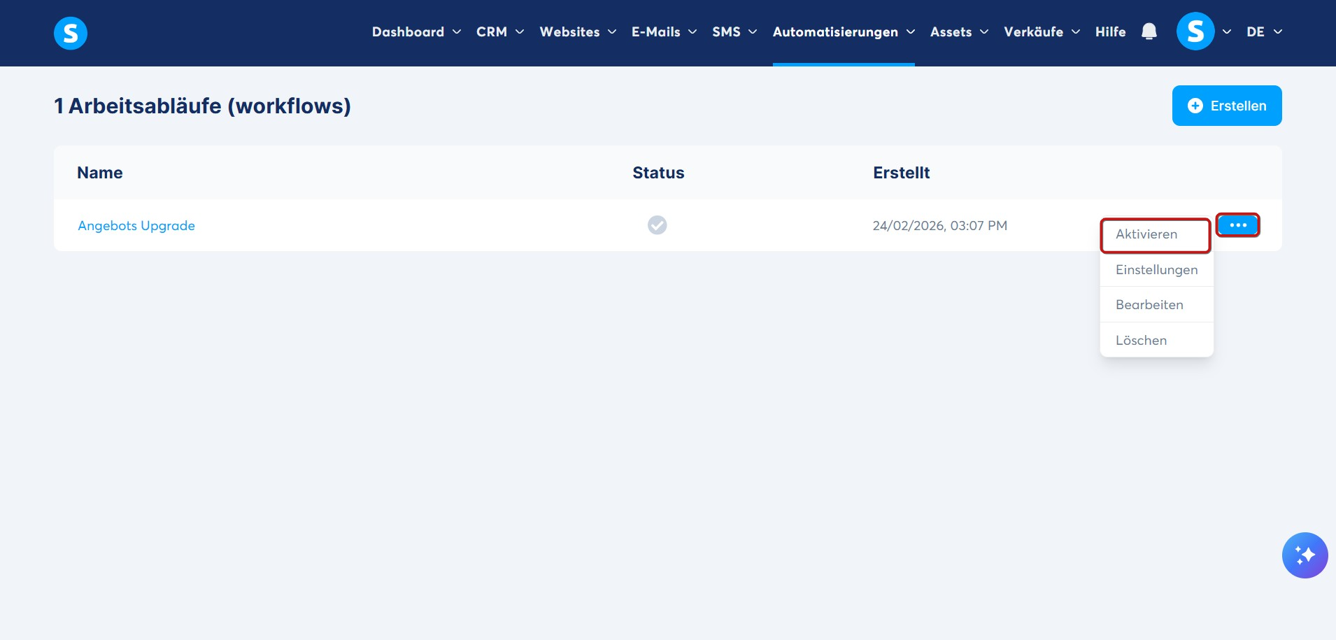 Workflow aktivieren
