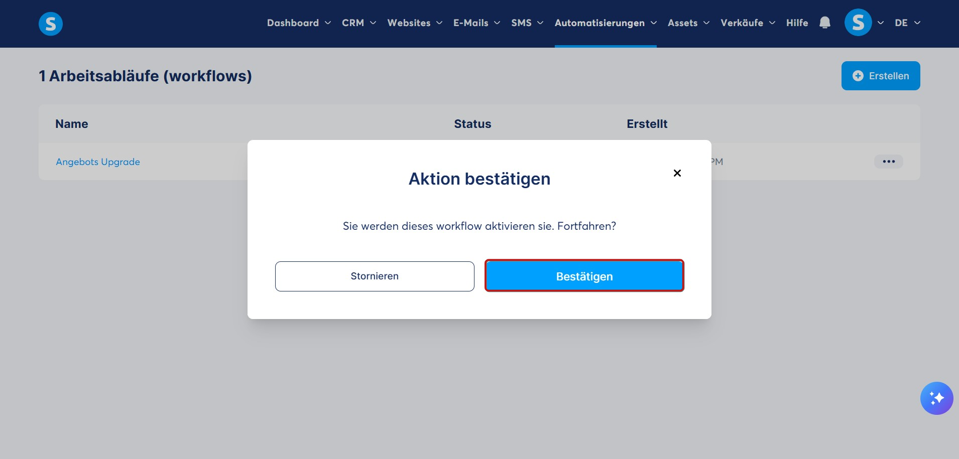 So aktivieren Sie den Workflow: