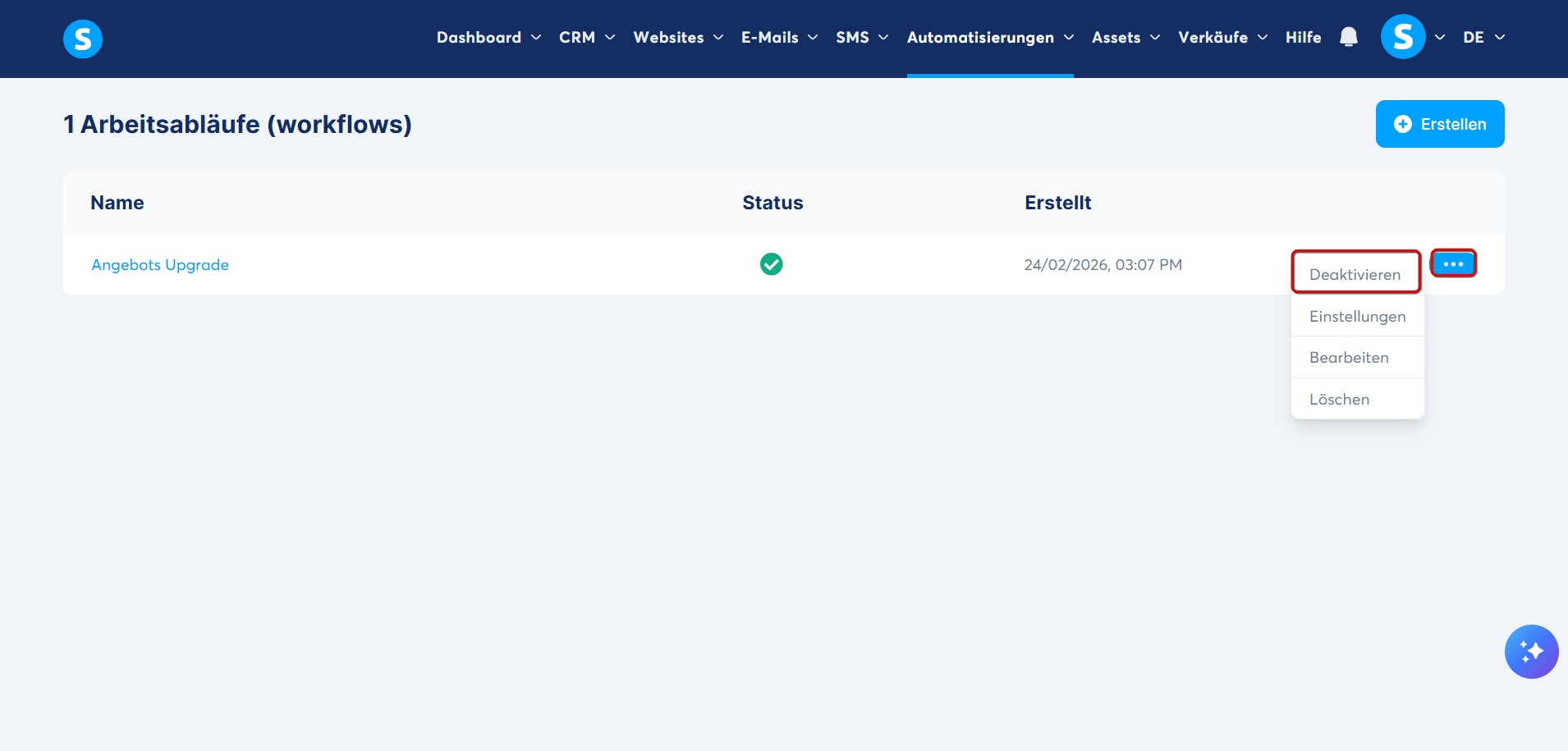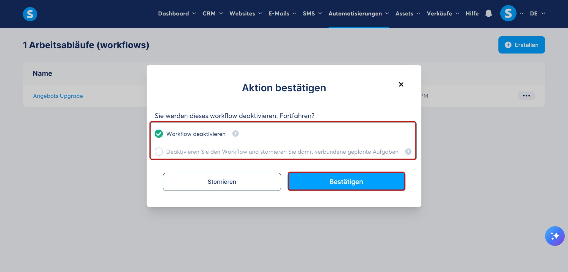 So deaktivieren Sie einen Workflow: