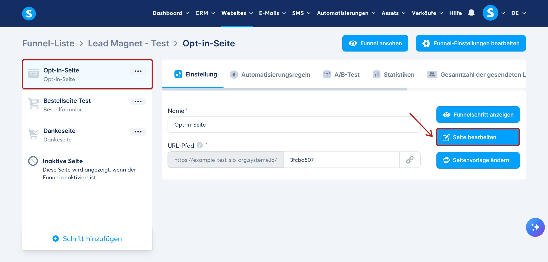Öffnen Sie den Editor Ihrer Opt-in-Seite, indem Sie auf die Schaltfläche Seite bearbeiten klicken:
