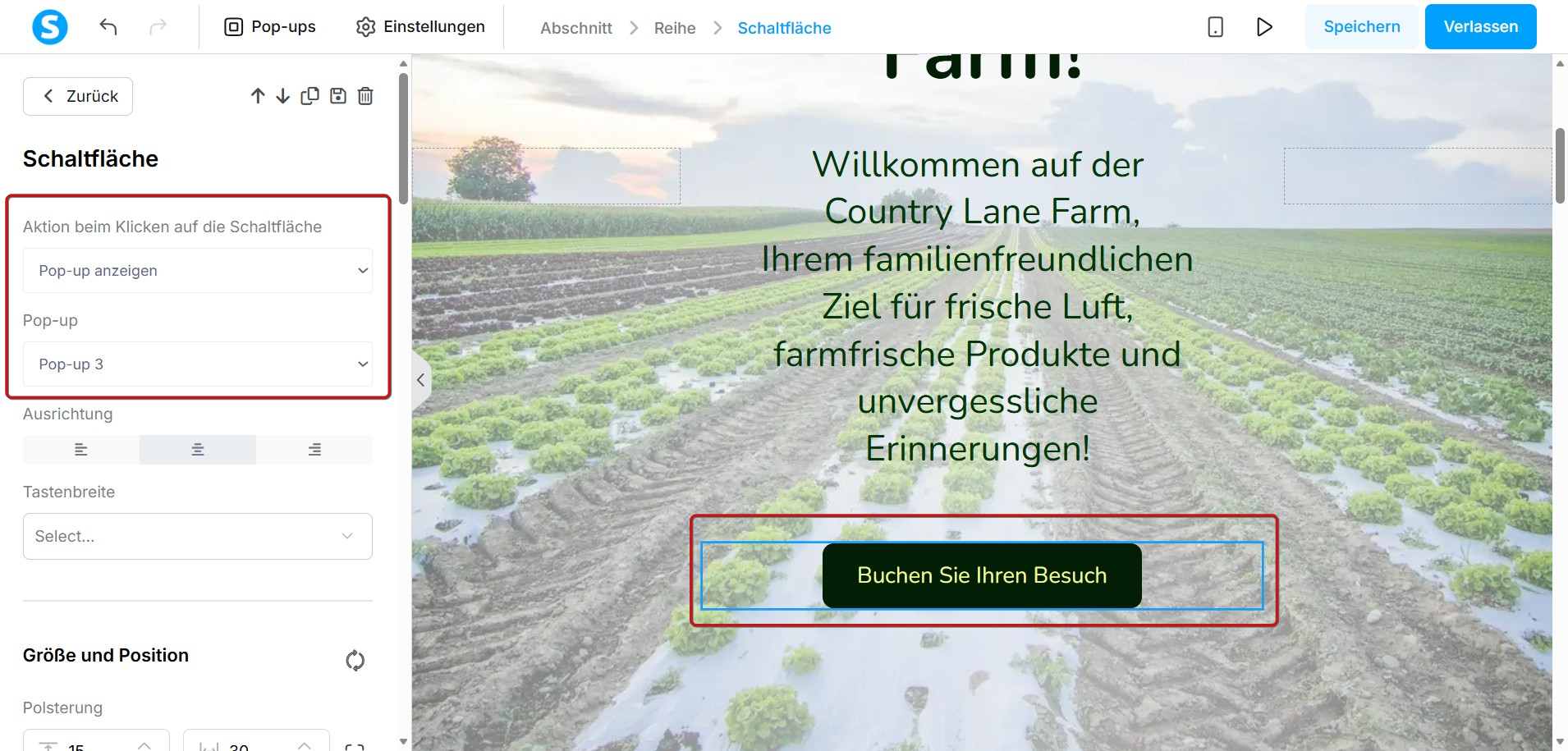 - Aktion beim Anklicken der Schaltfläche: "Pop-Up anzeigen"
