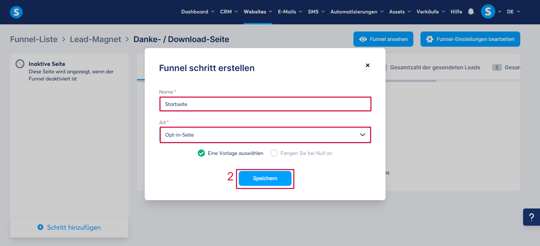 2. So erstellen Sie eine Website mit der Sales-Funnel-Funktion