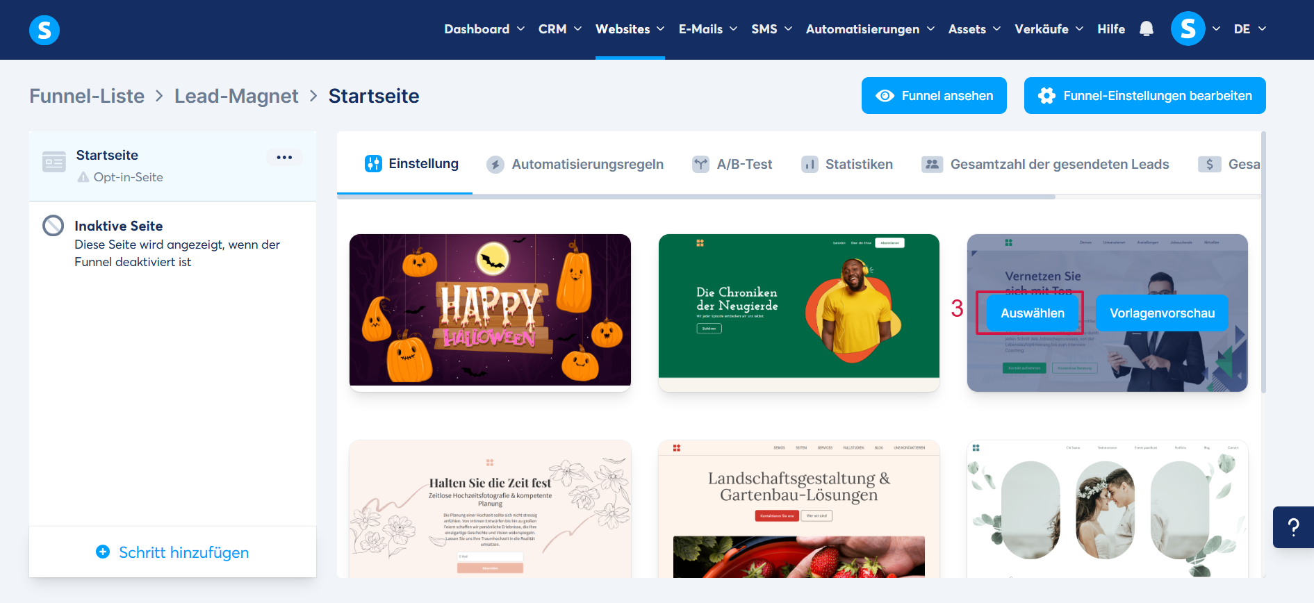 Folgen Sie diesem Vorgehen, um alle Ihre Website-Seiten (Funnel-Seiten) zu erstellen.