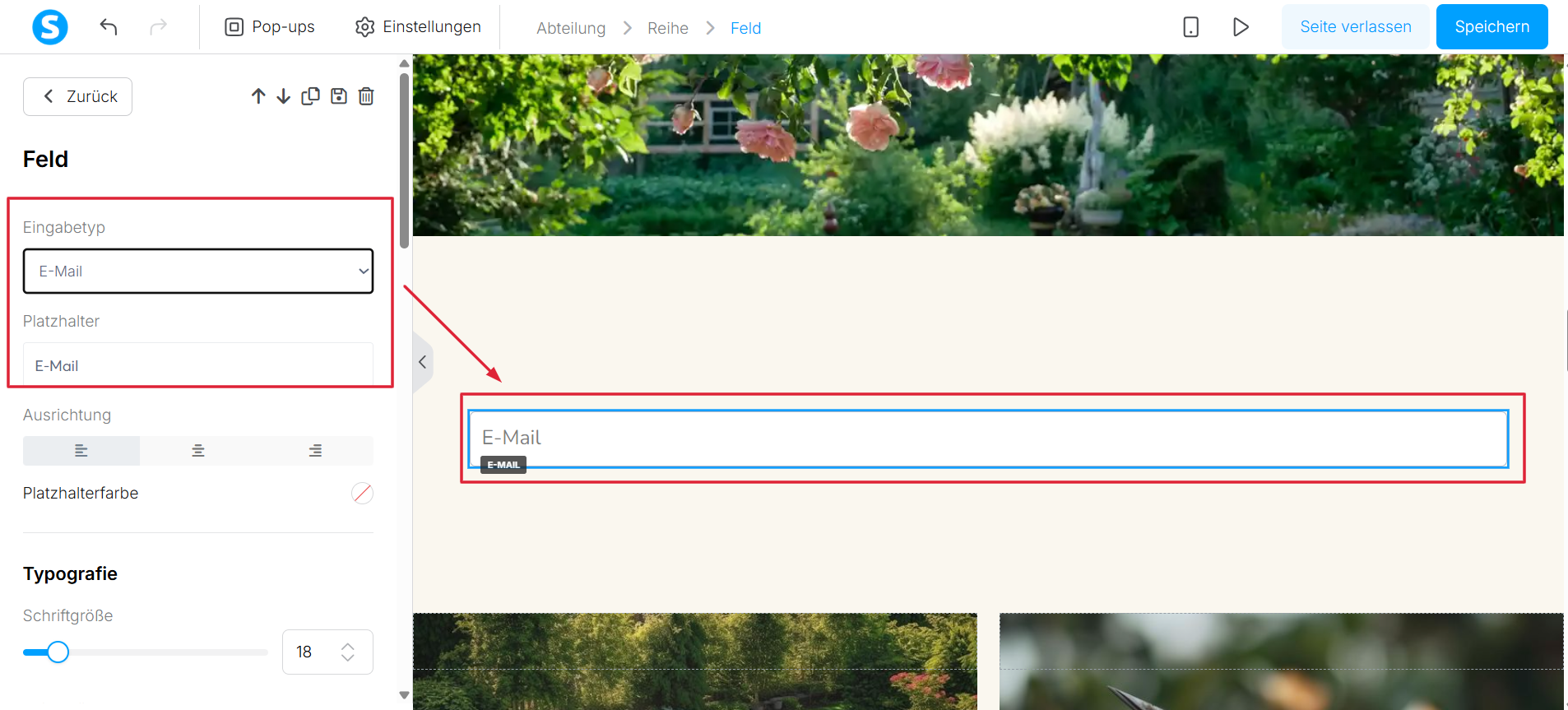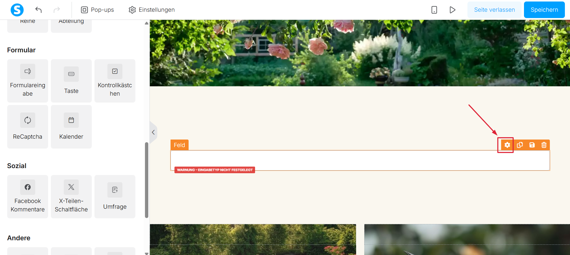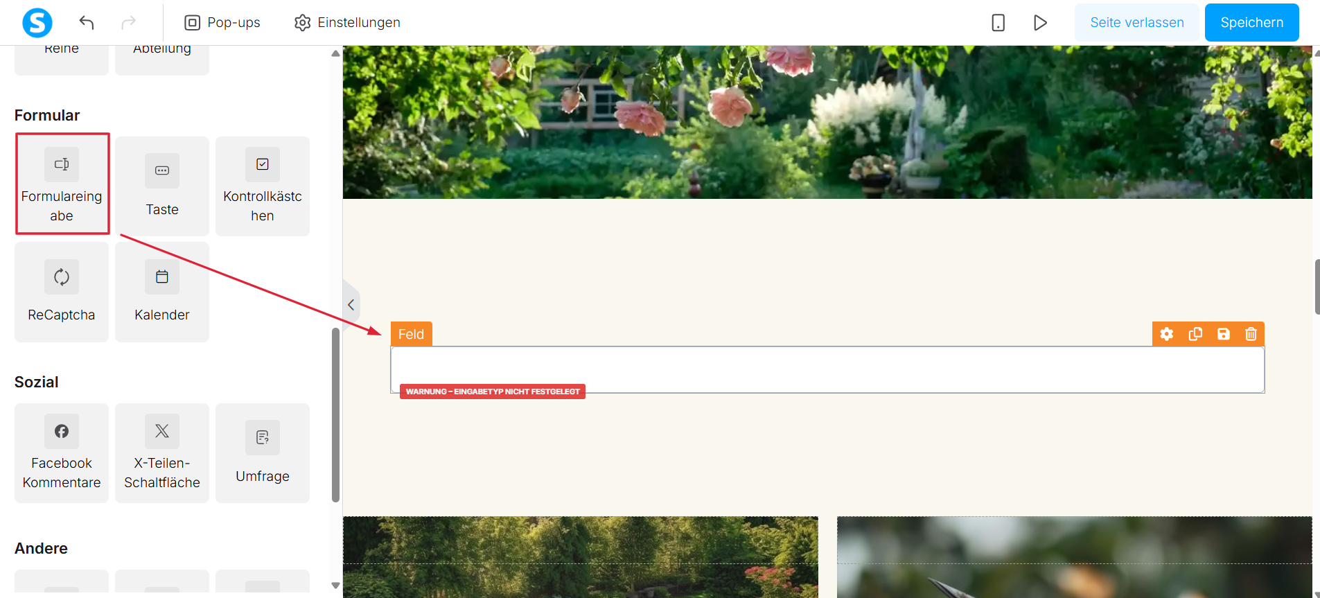 Ziehen Sie im Seiteneditor das Formularfeld-Element aus dem linken Panel und legen Sie es auf Ihrer Seite ab.
