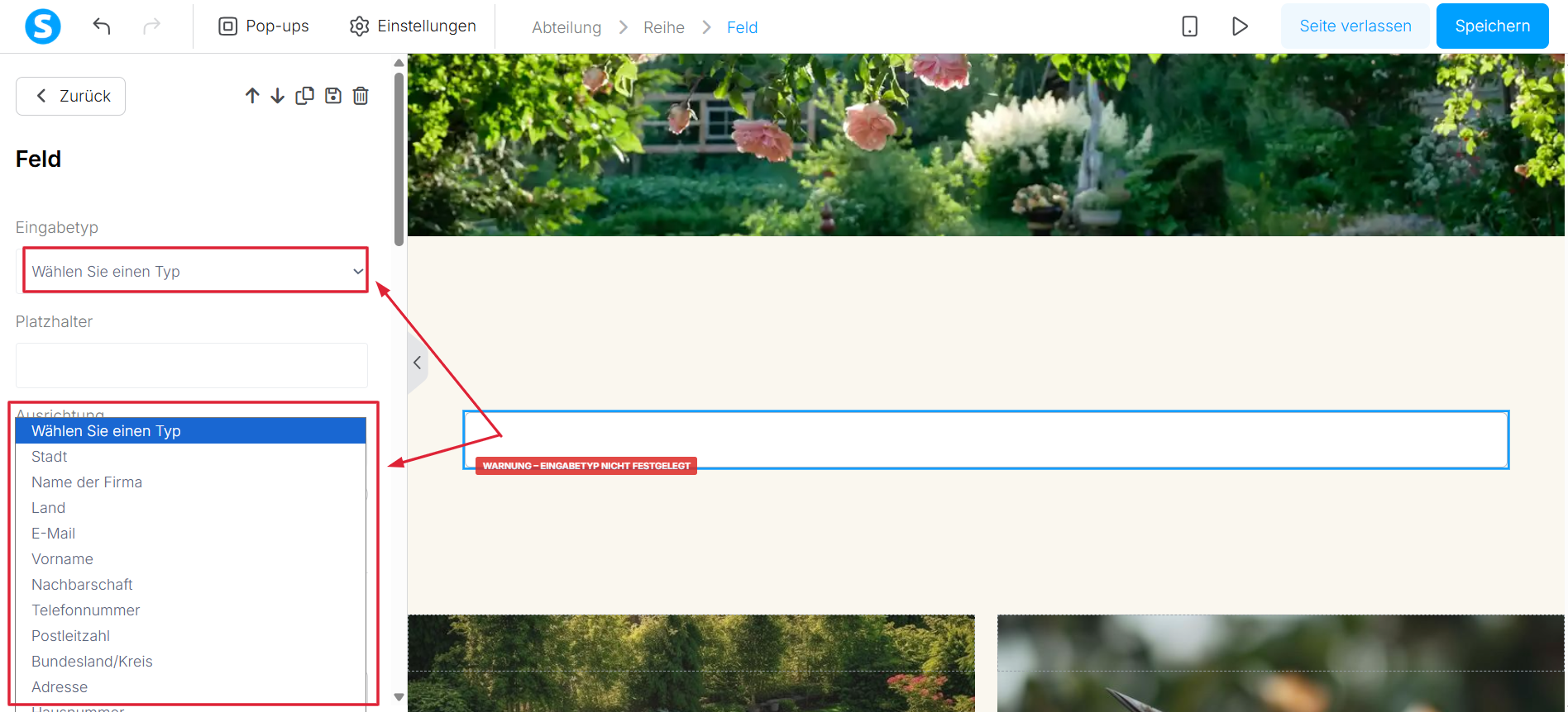 Beispiel: Wenn Sie „E-Mail“ als Eingabetyp auswählen, wird der Kontakt beim Absenden des Formulars in Ihre Kontaktliste übernommen.
