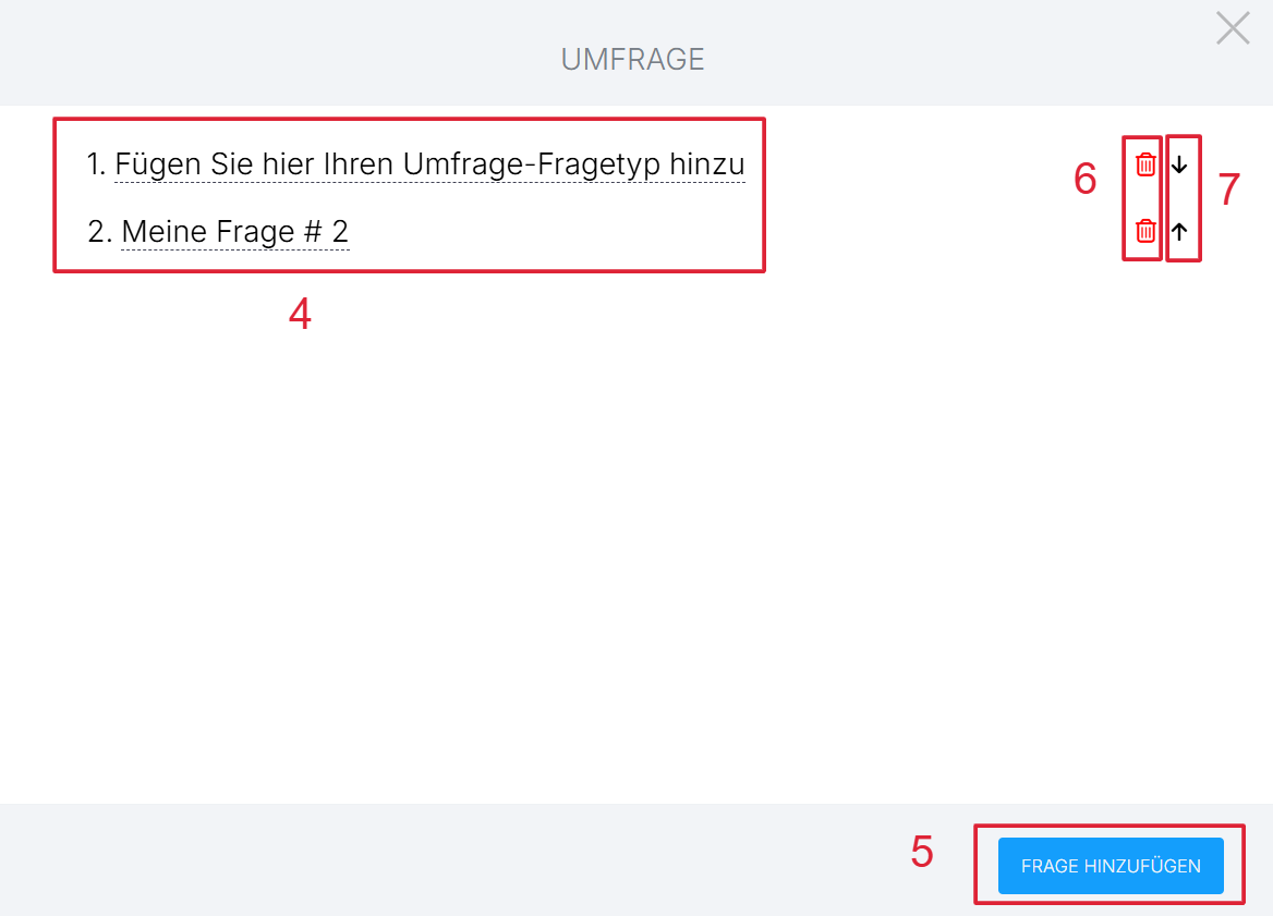 - Um eine Frage zu löschen, klicken Sie auf das Papierkorb-Symbol (6).