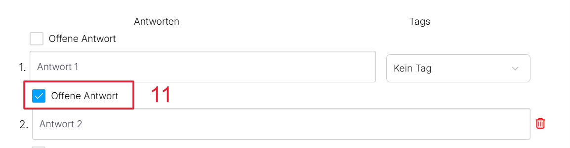 Hinweis: Es ist nicht möglich, für „Offene Antworten“ einen Tag zu vergeben.