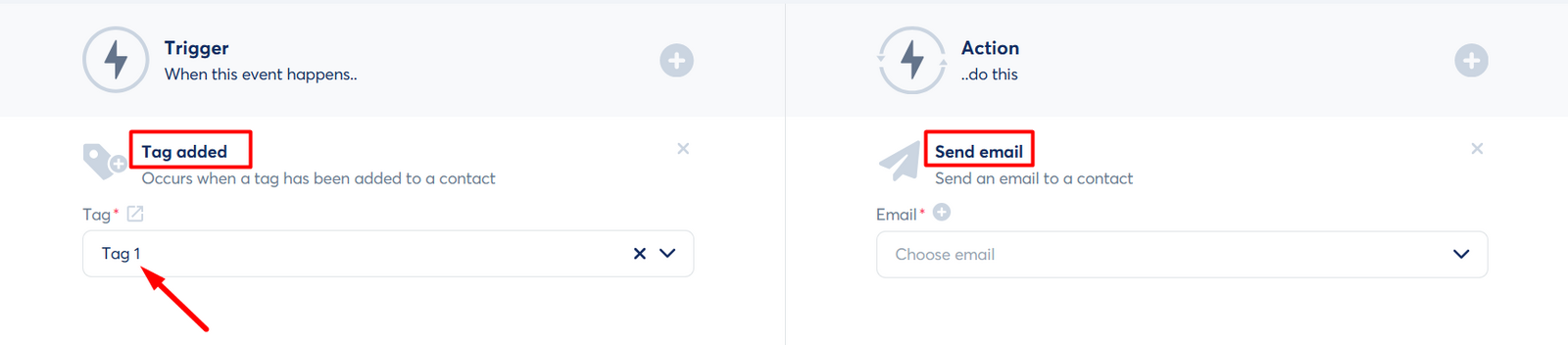 Erstellen Sie dafür eine Automatisierungsregel mit dem Trigger „Tag hinzugefügt“ und wählen Sie die Aktion „E-Mail senden“.