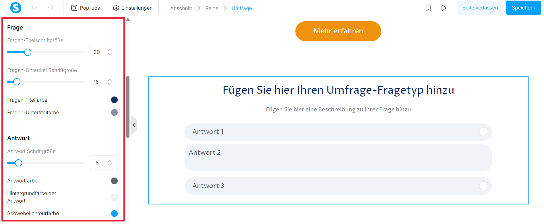 Sie können das Erscheinungsbild Ihrer Umfrage mithilfe der folgenden Einstellungen anpassen: