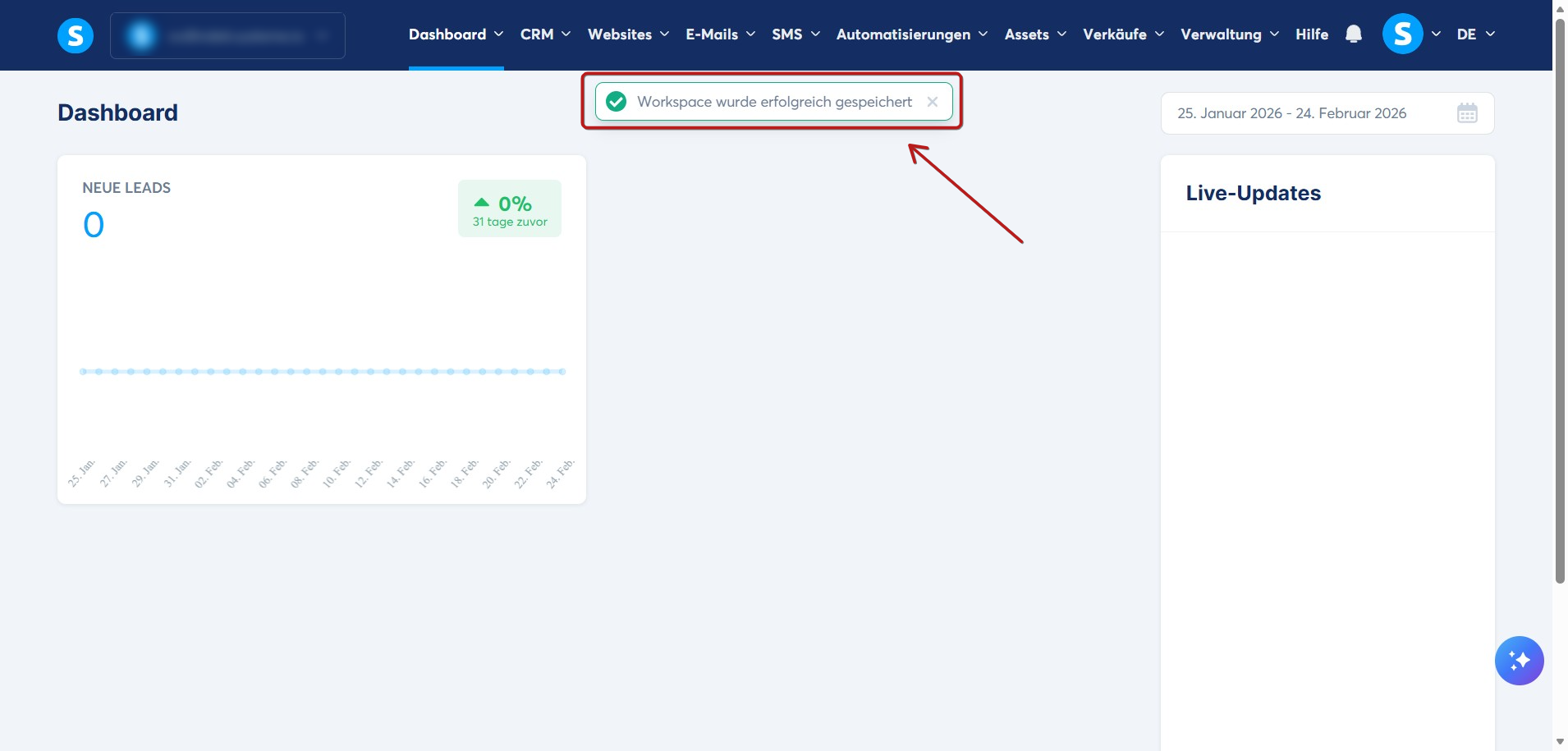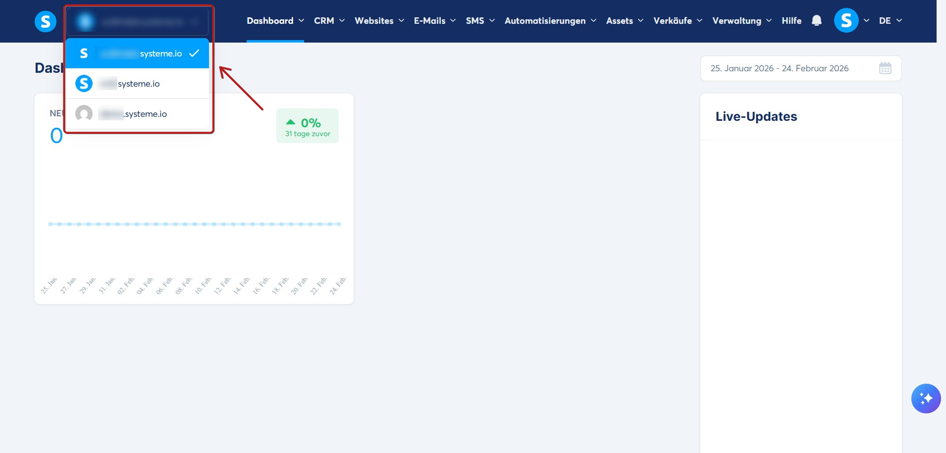 Sobald sie eingeloggt sind, können Assistenten über das Menü oben links in ihrem Dashboard zwischen den Arbeitsbereichen wechseln.