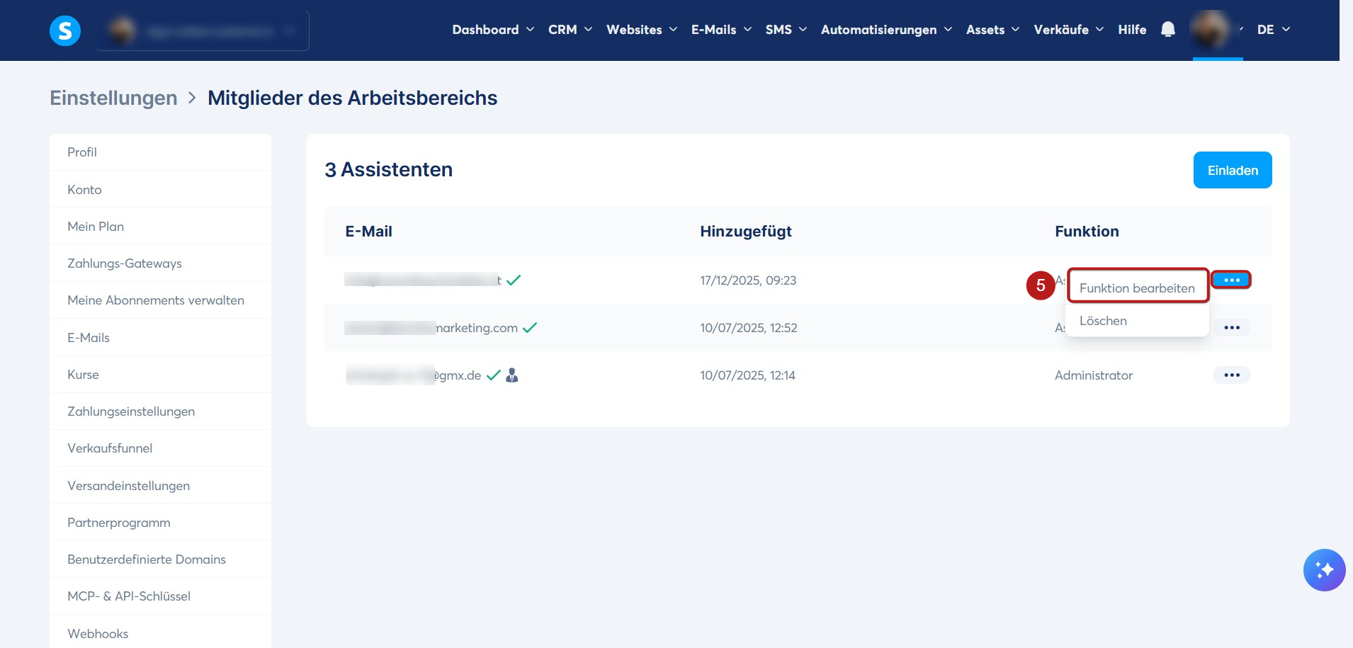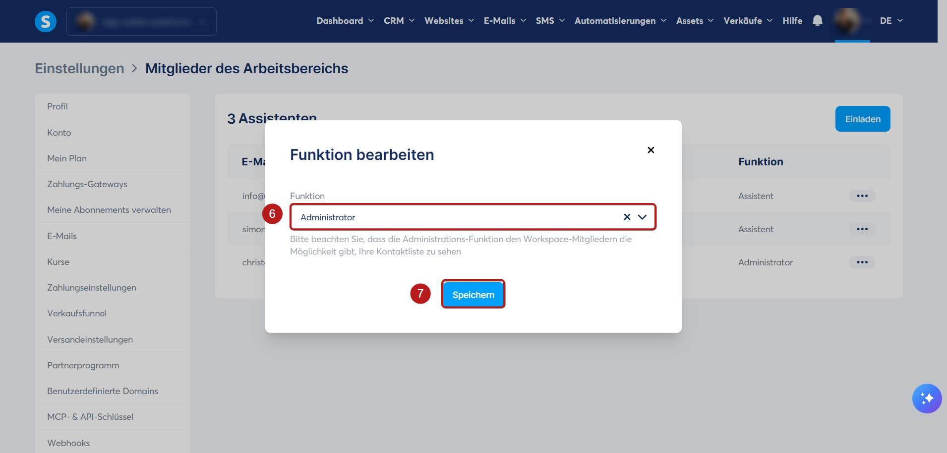So laden Sie einen Assistenten zu Ihrem systeme.io-Konto ein