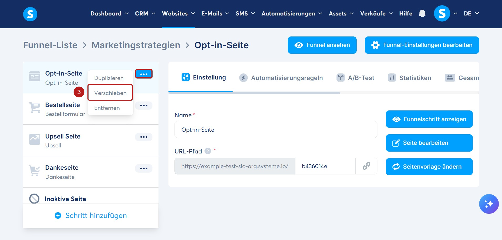 So verschieben, duplizieren und löschen Sie eine Seite aus einem Sales Funnel