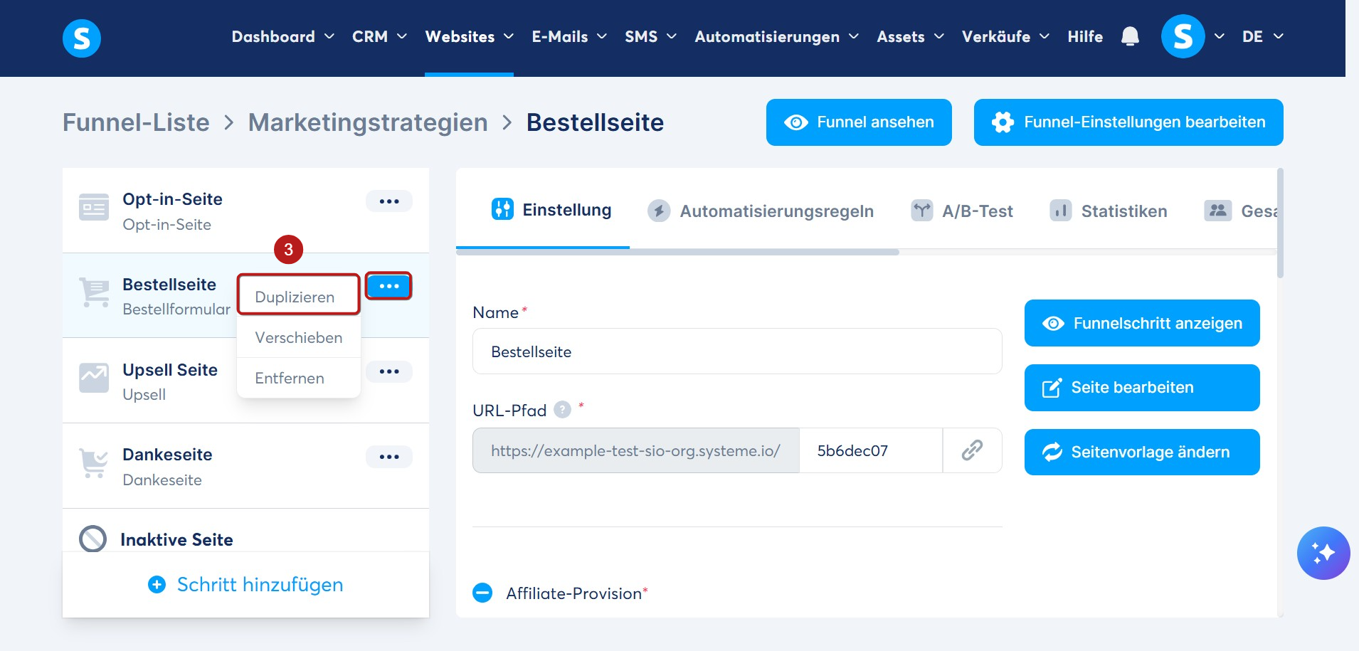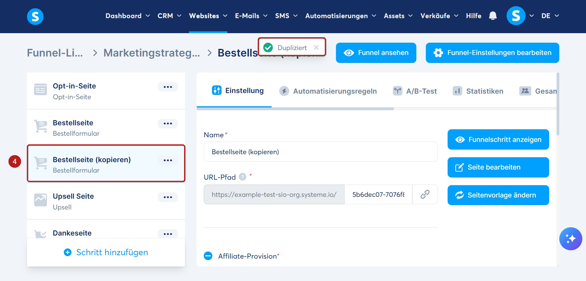 2. Um eine Seite in einem Sales-Funnel zu duplizieren:
