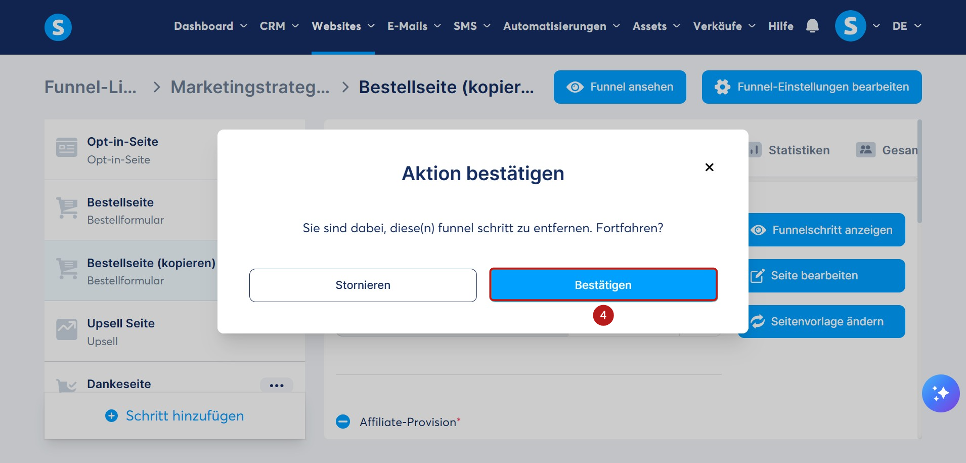 3. Um eine Seite aus einem Sales-Funnel zu löschen: