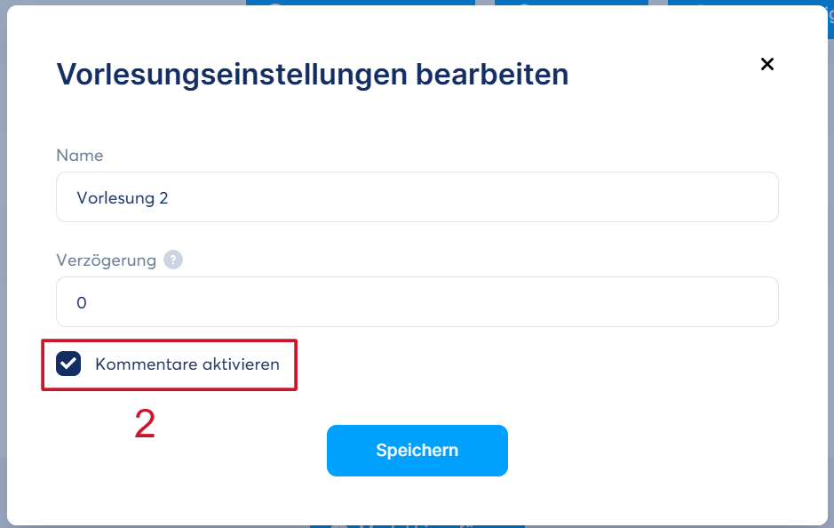 Im daraufhin angezeigten Pop-up aktivieren Sie das Kontrollkästchen „Kommentare aktivieren“ (2).
