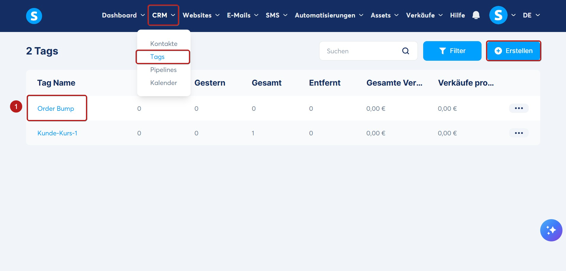1. Erstellen Sie einen spezifischen Tag (So erstellen Sie einen Tag). Beispiel: Order Bump (1).