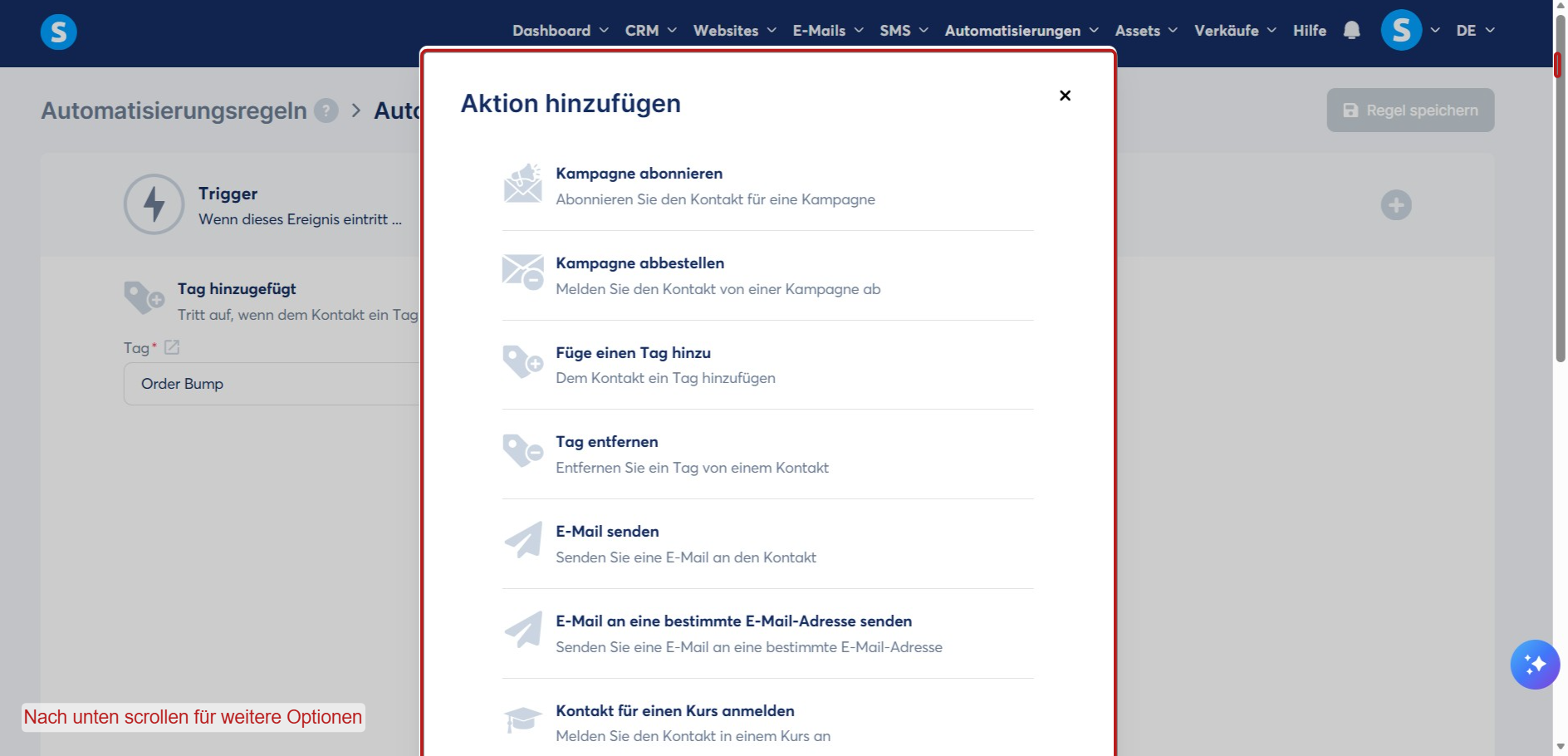 In diesem Artikel erfahren Sie, wie Sie Automatisierungsregeln auslösen, wenn ein Kunde einen Order Bump kauft.