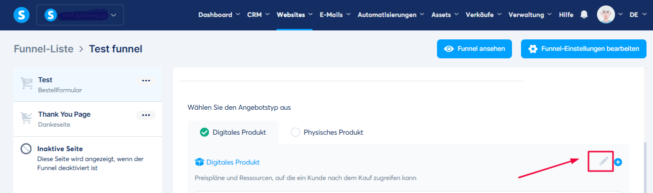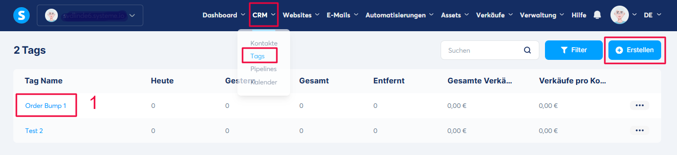 Fügen Sie den "Order Bump"-Tag hinzu, den Sie im Abschnitt "Ressourcen" des Order Bumps auf der Zahlungsseite erstellt haben (Nummer 2 im Bild).