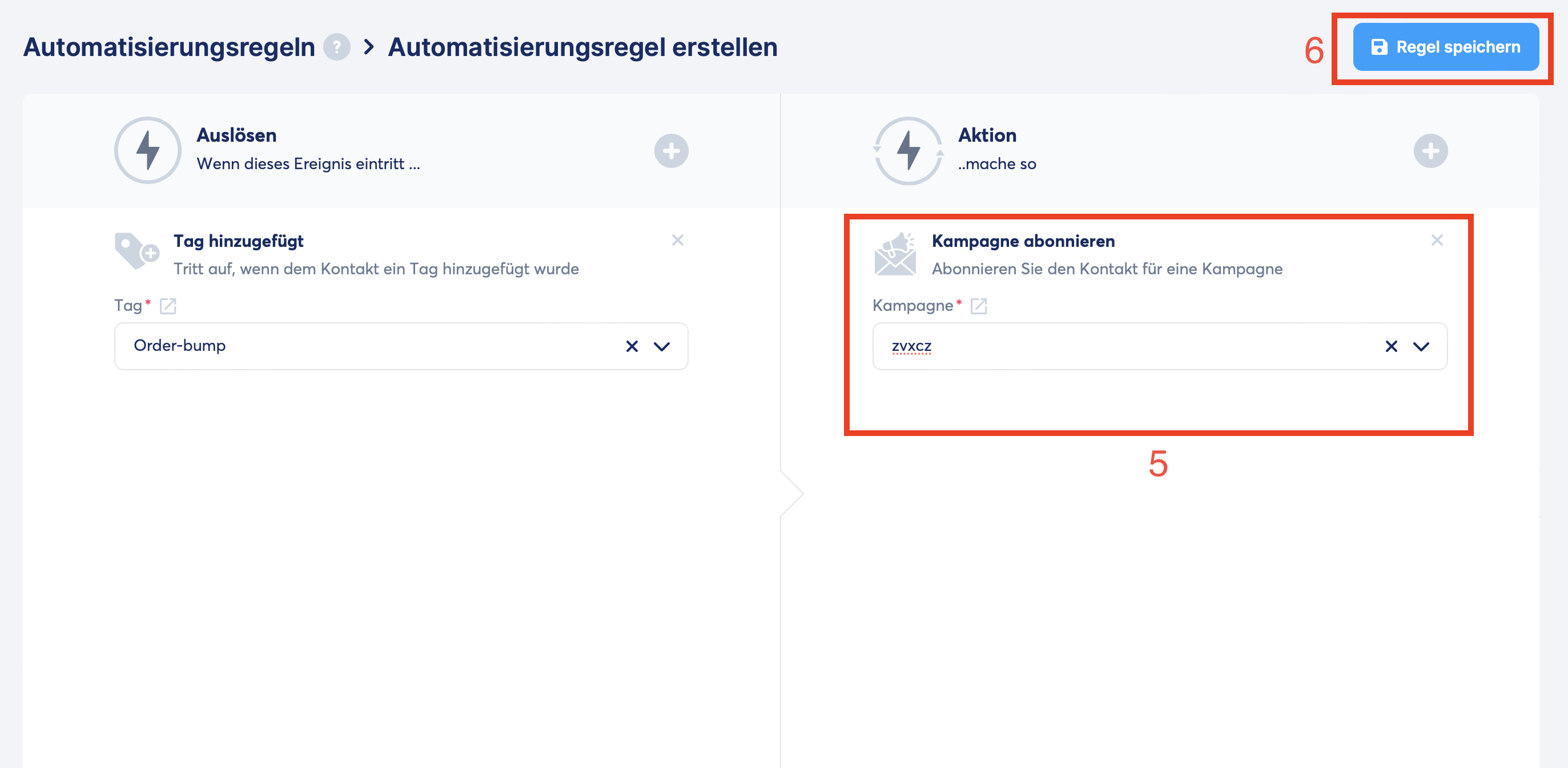 Um das Auslösen mehrerer Automatisierungsregeln nach dem Kauf Ihres Order Bumps auf der Zahlungsseite zu automatisieren, müssen Sie drei grundlegende Schritte durchführen: